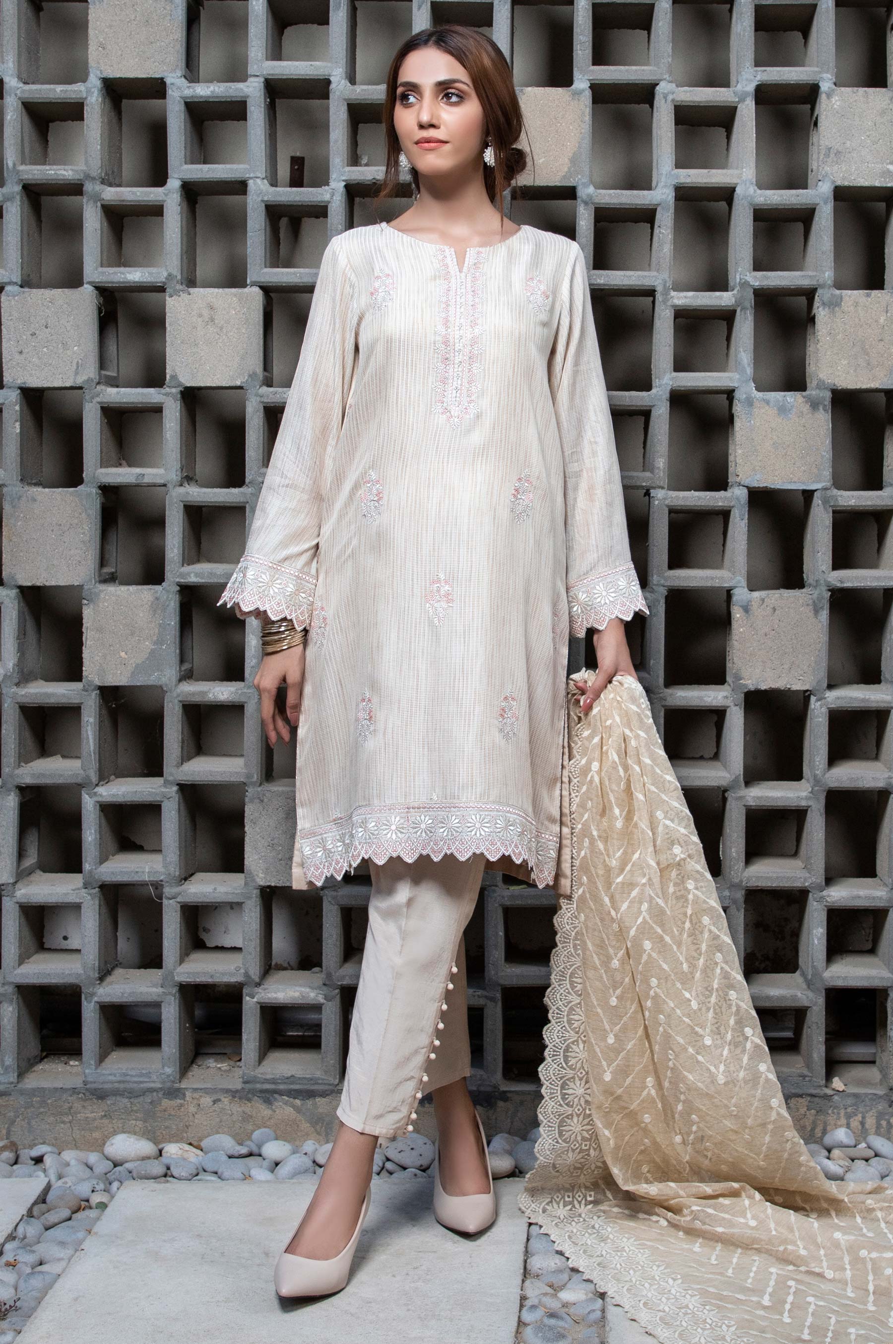 Inspired by floral patterns, this elegant kameez in tonal embroidery and beautiful schiffli embroidered dupatta is a combination which can never go out of style