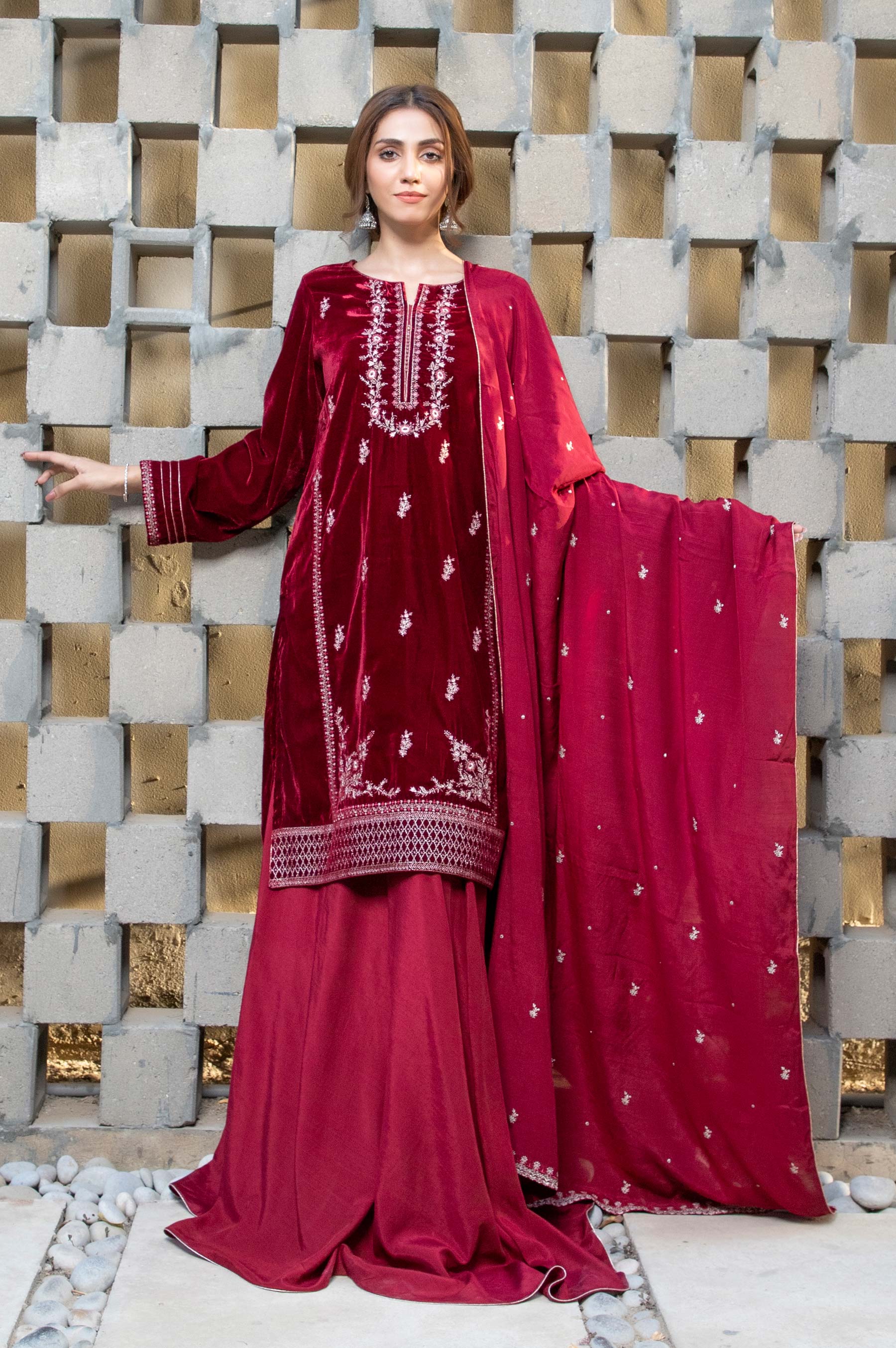 *Velvet Back & Sleeves *Embroidered Border For Dupatta, Shirt Front & Sleeves