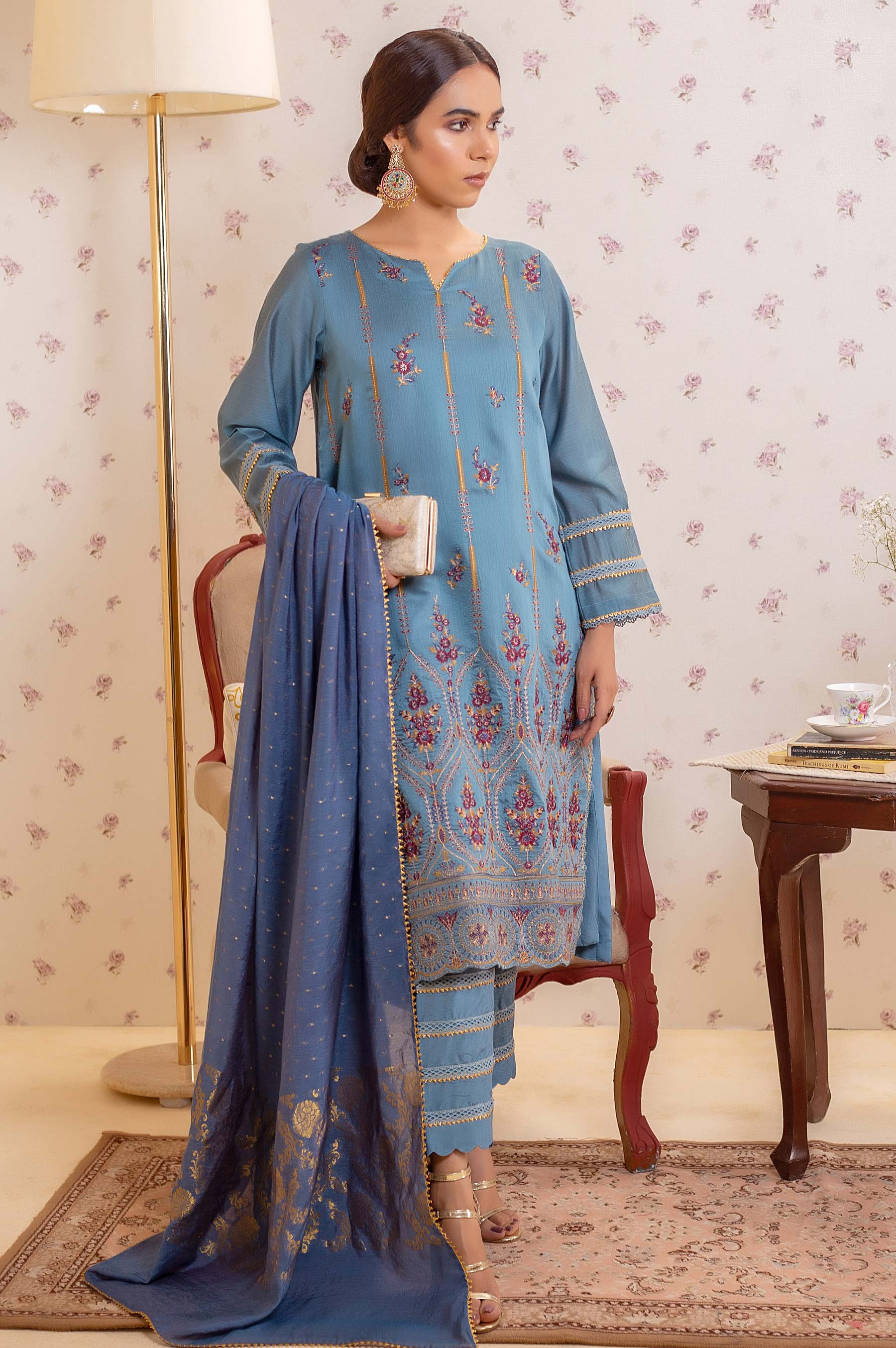 3 Piece Unstitched Embroidered Cotton Net Suit