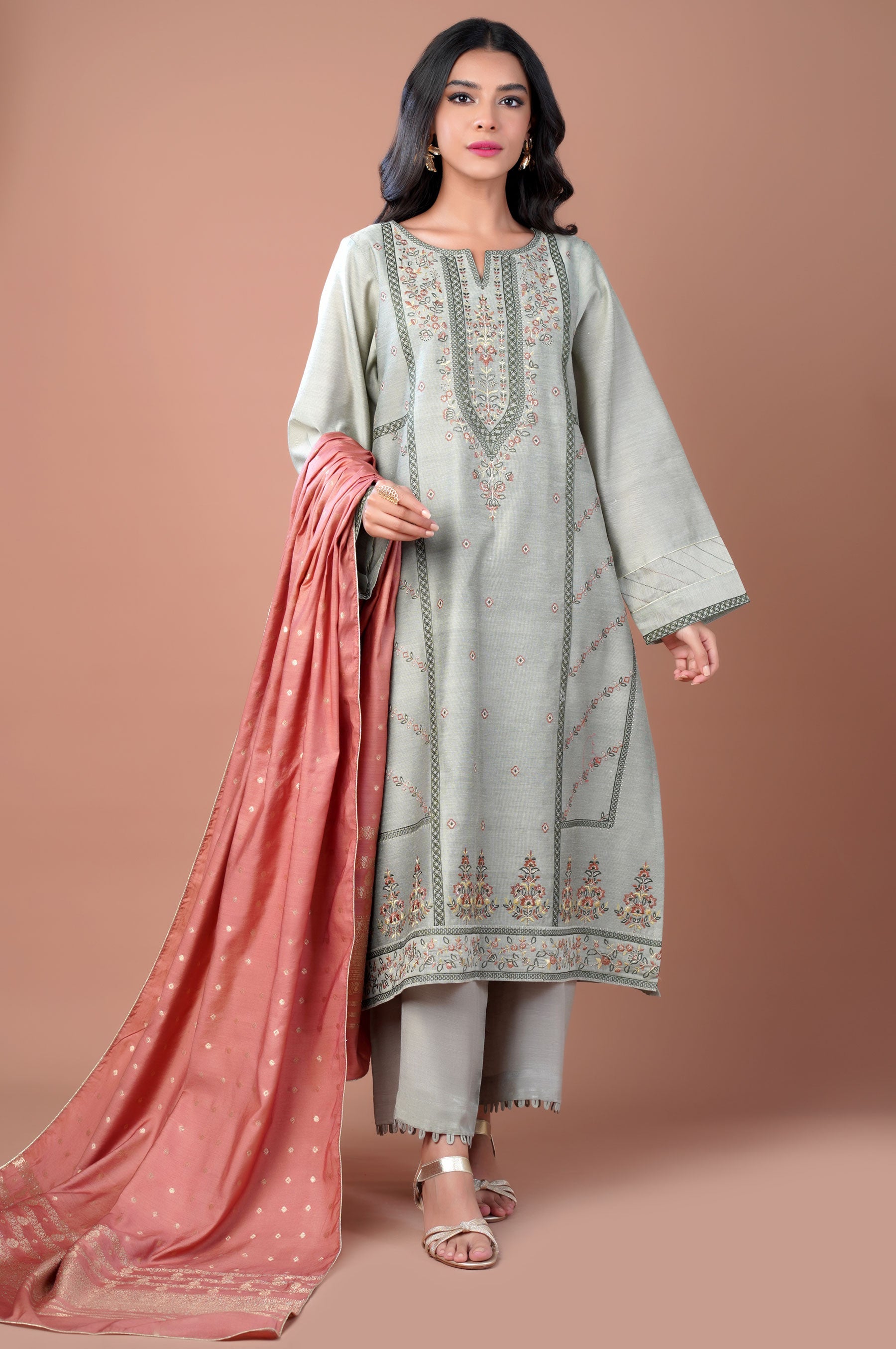 3 Piece Unstitched Embroidered Cotton Net Suit