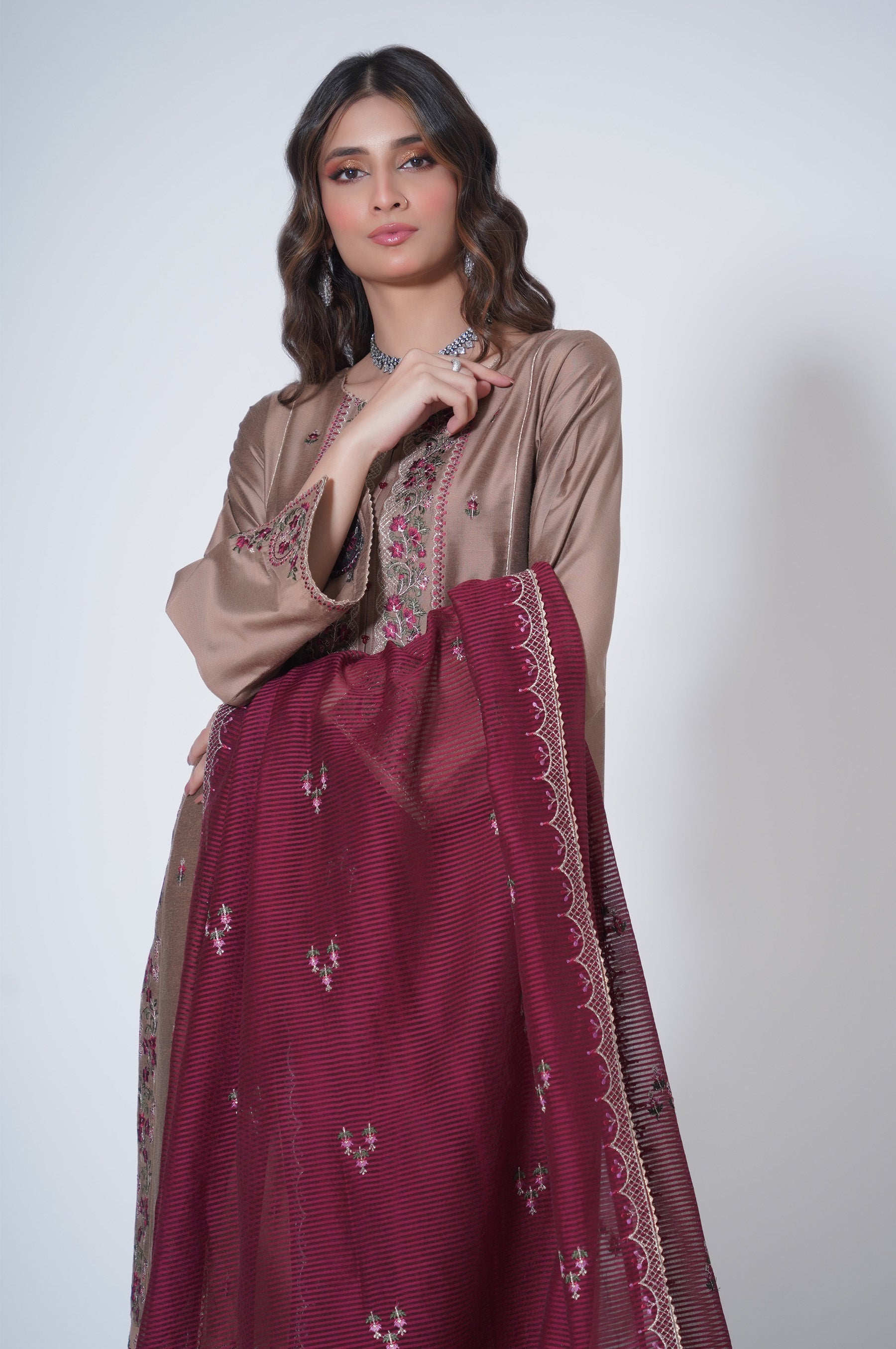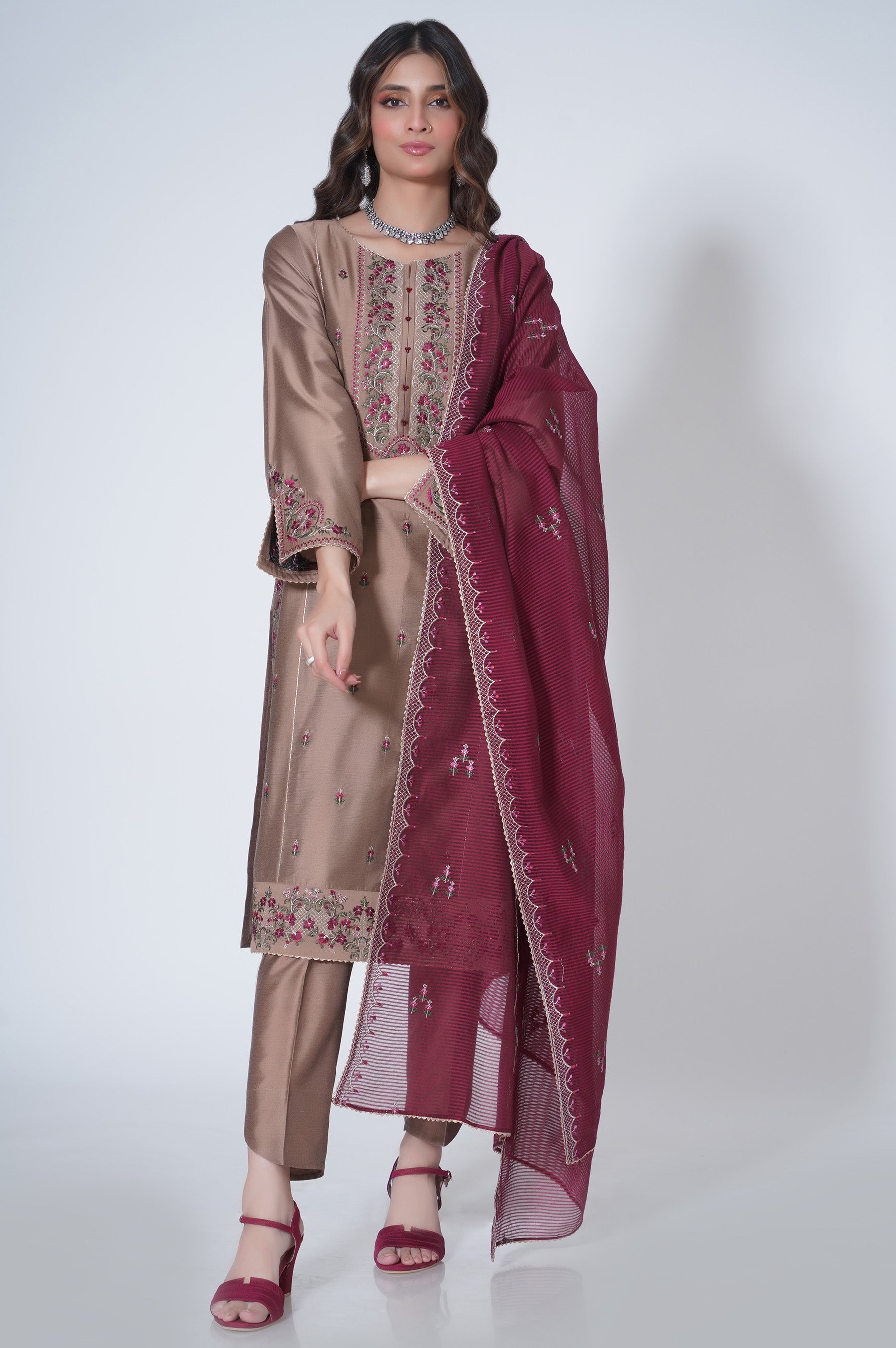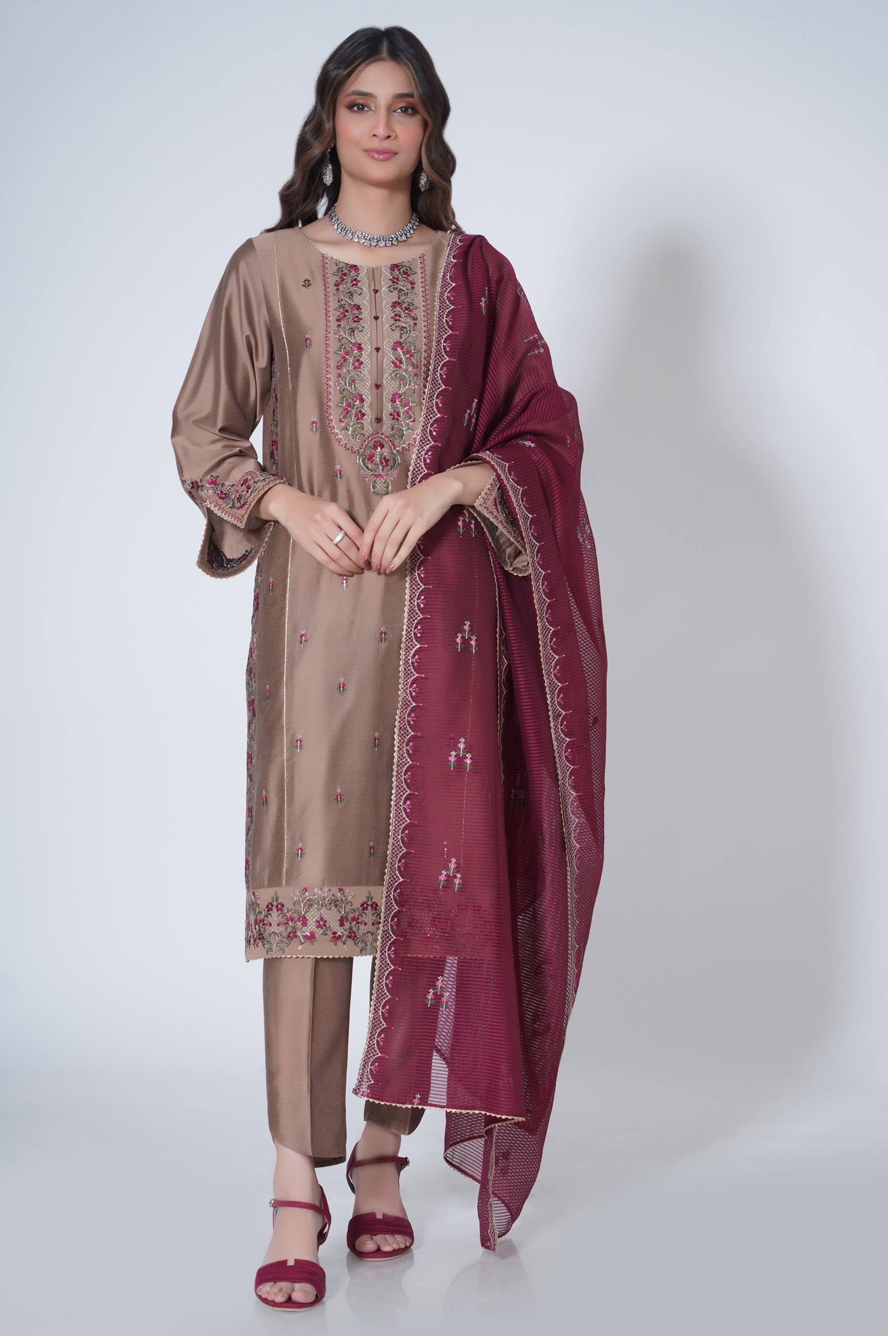 3 Piece Unstitched Embroidered Cotton silk Suit