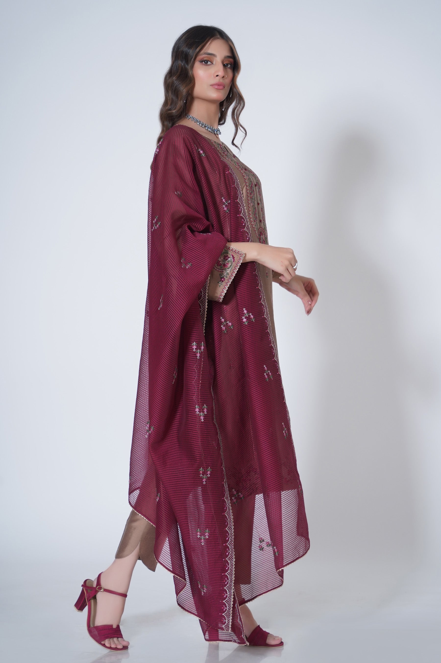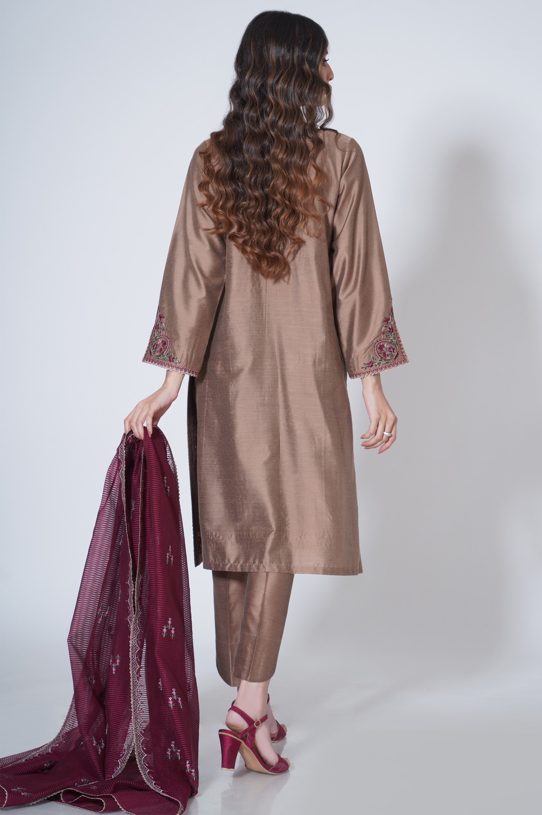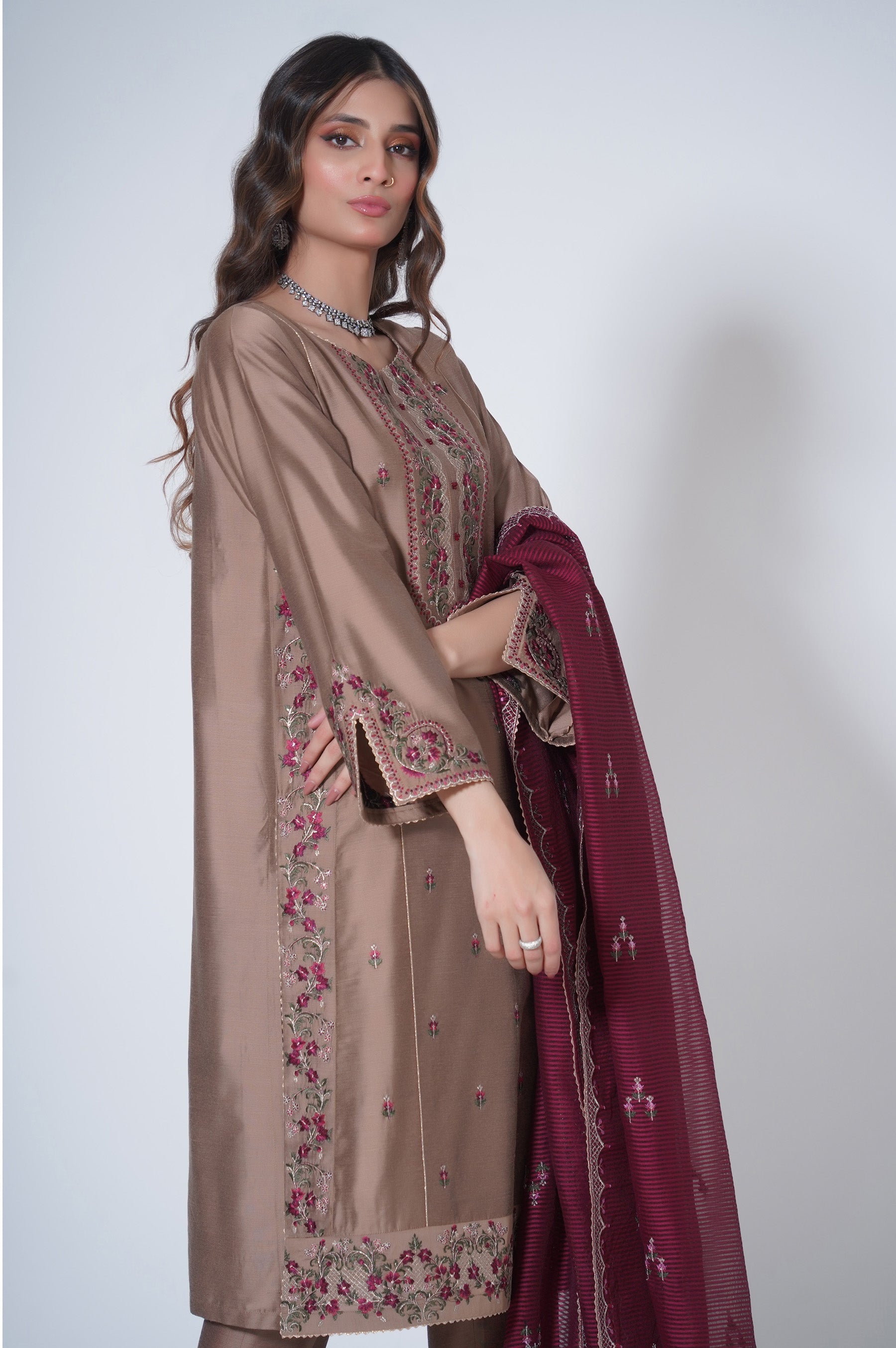 3 Piece Unstitched Embroidered Cotton silk Suit