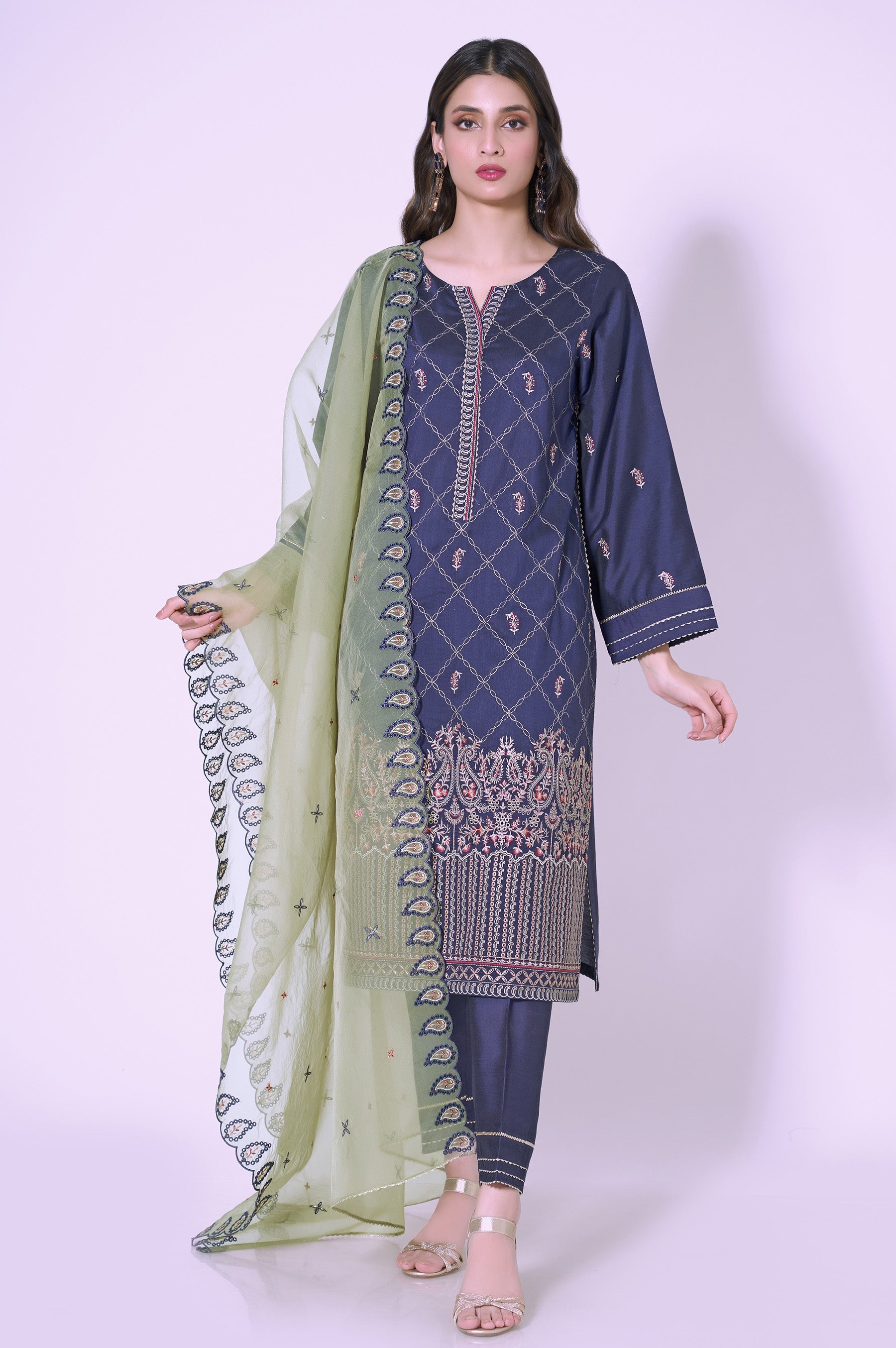 3 Piece Unstitched Embroidered Cotton silk Suit