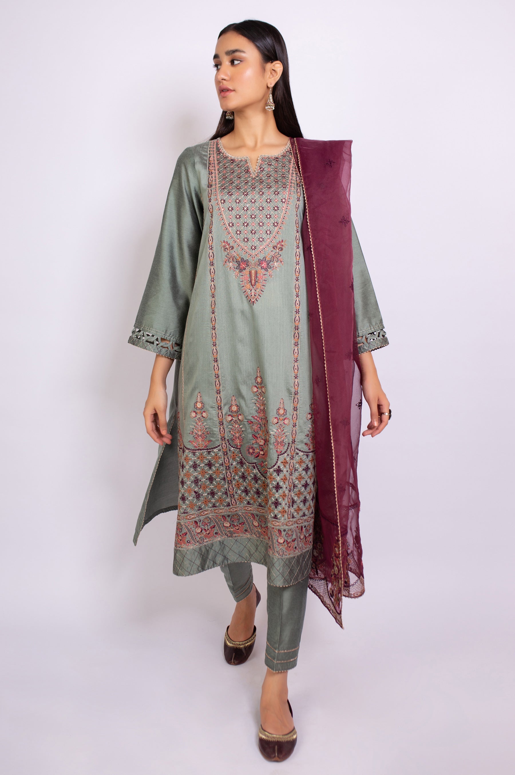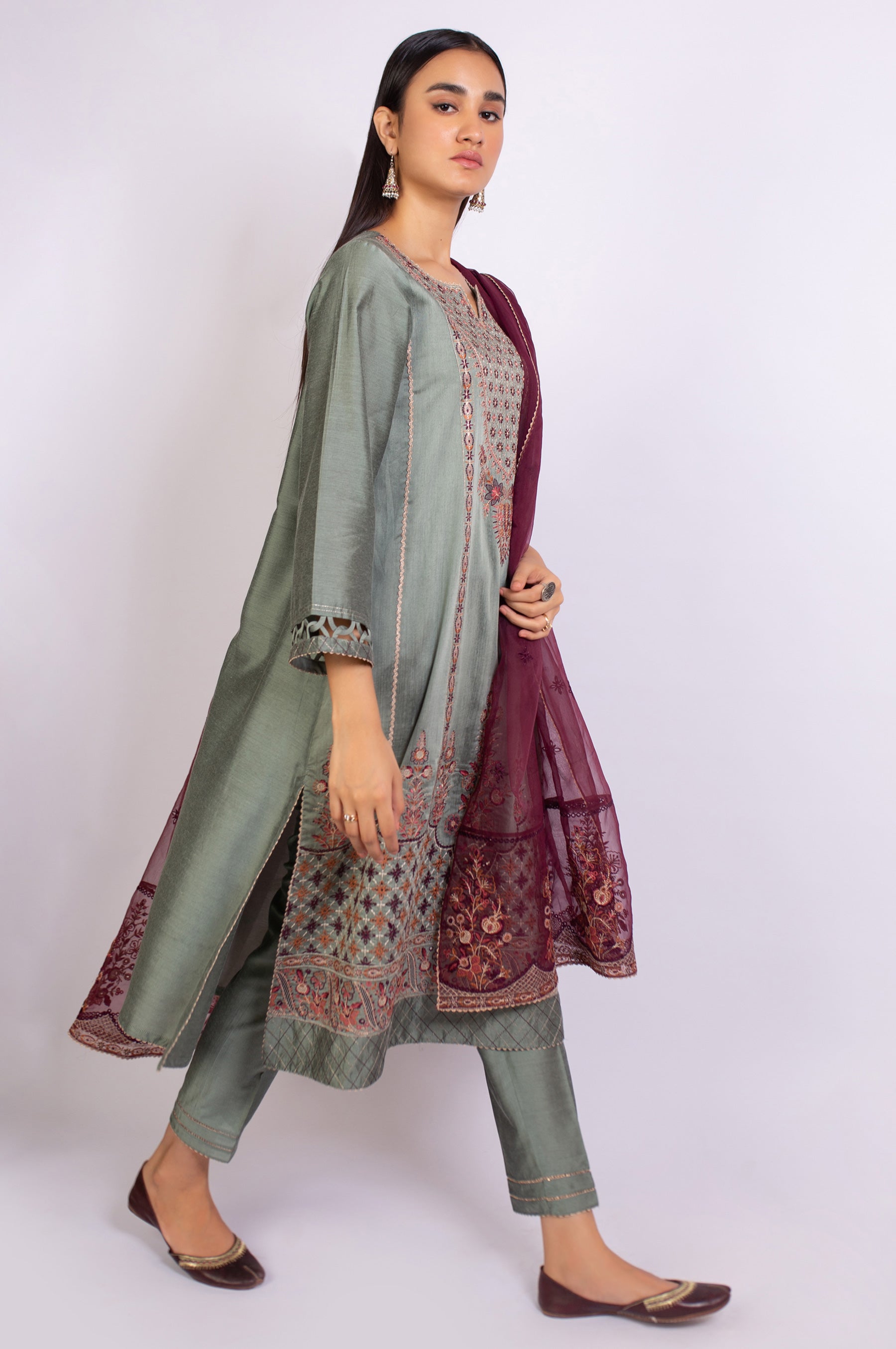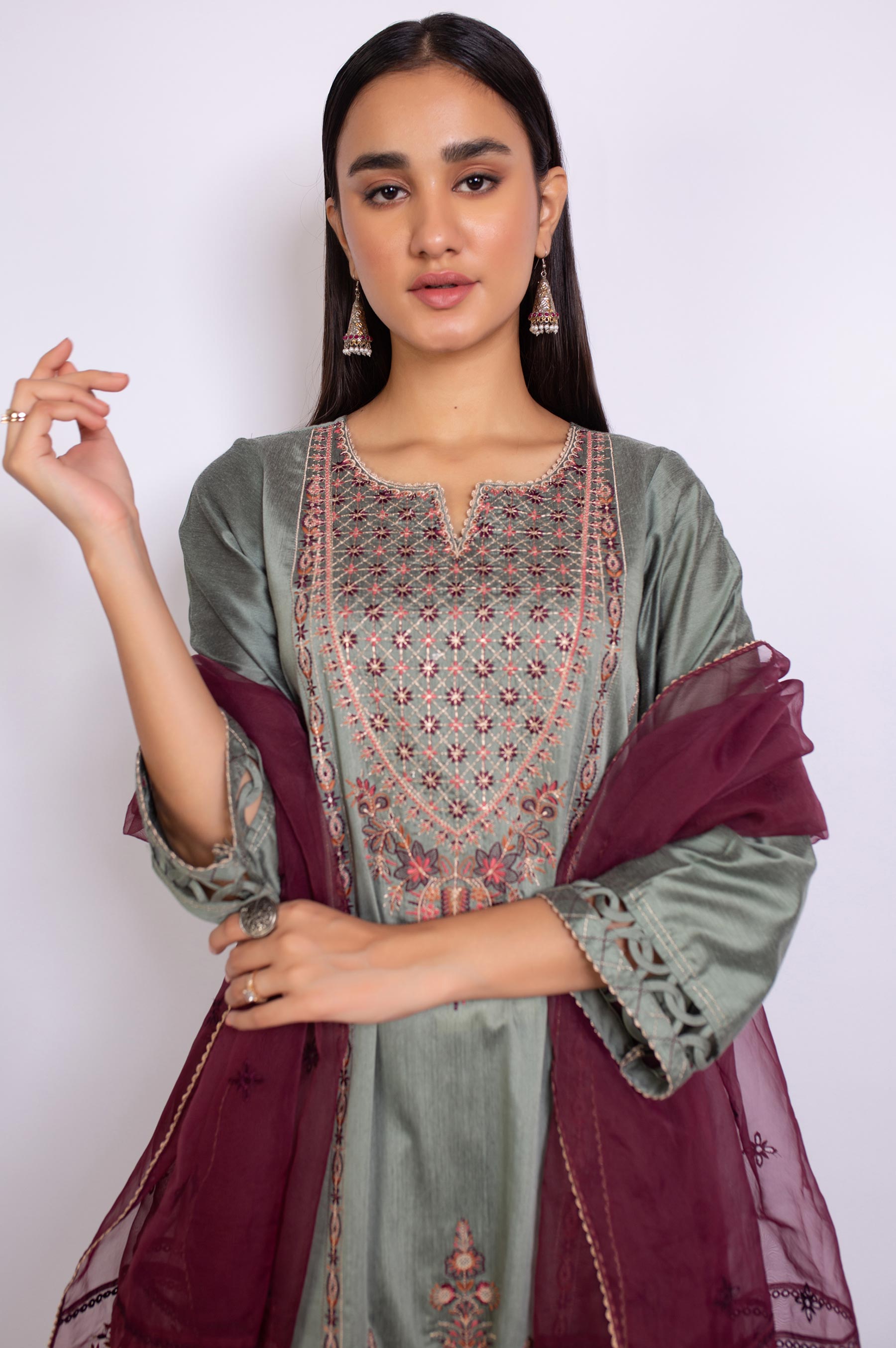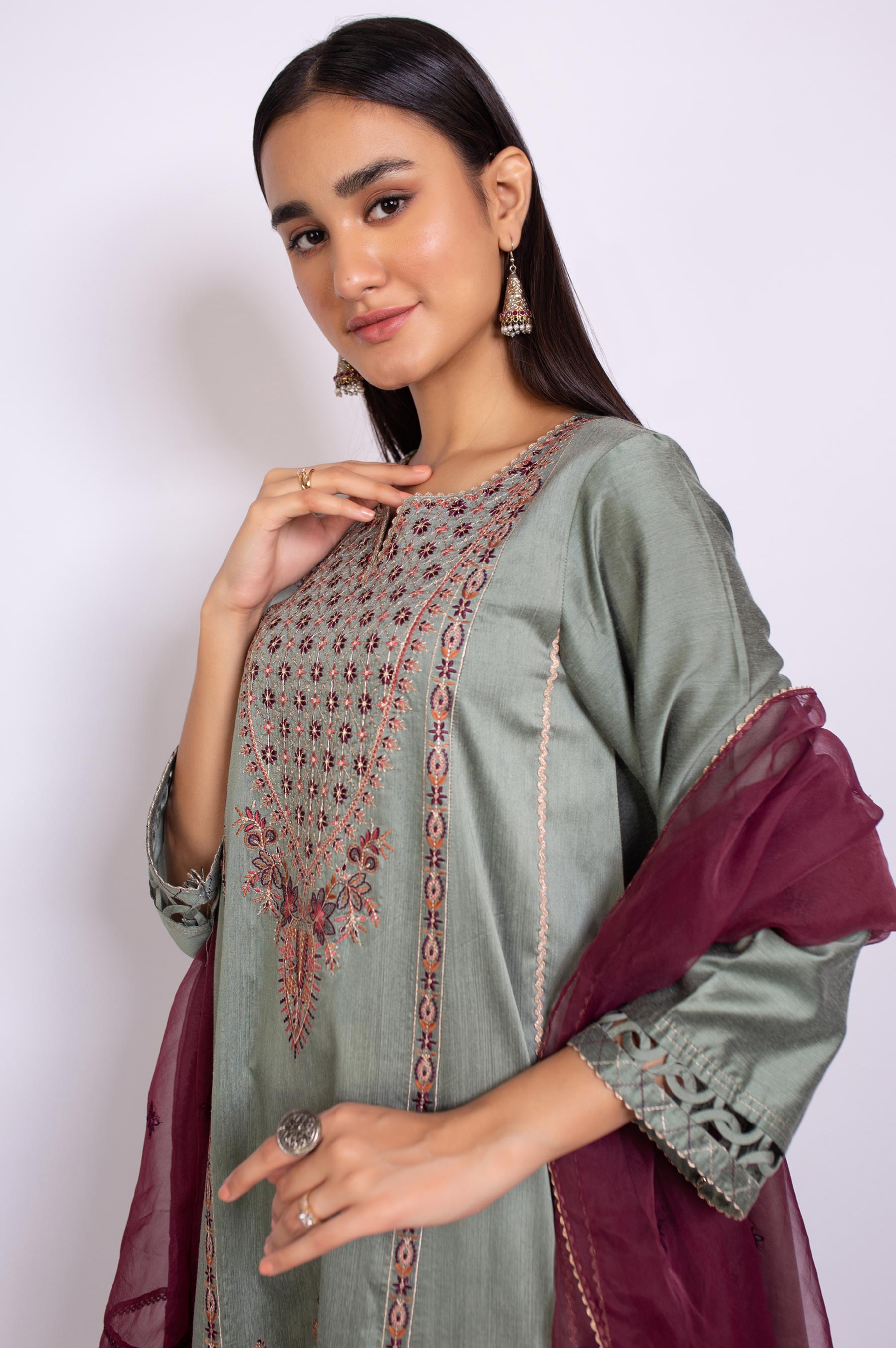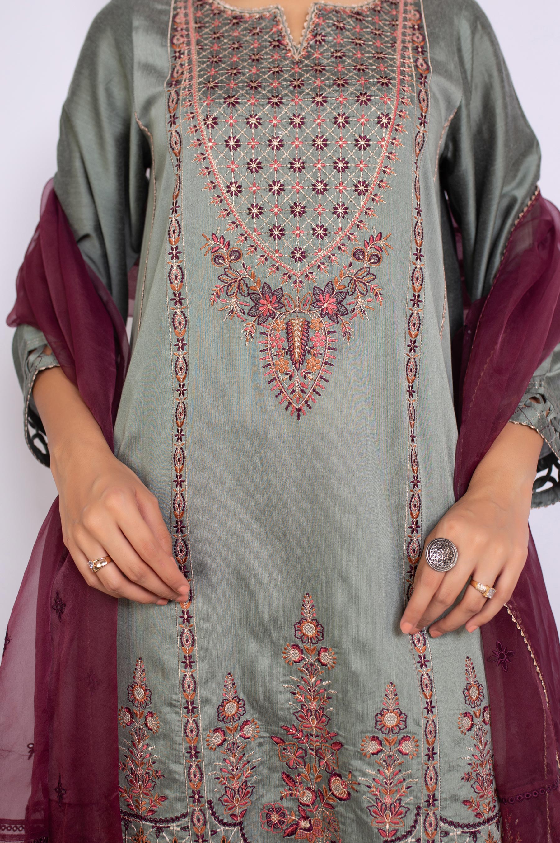 2.5 Yards Embroidered Organza DupattaEmbroidered Cotton Silk Front