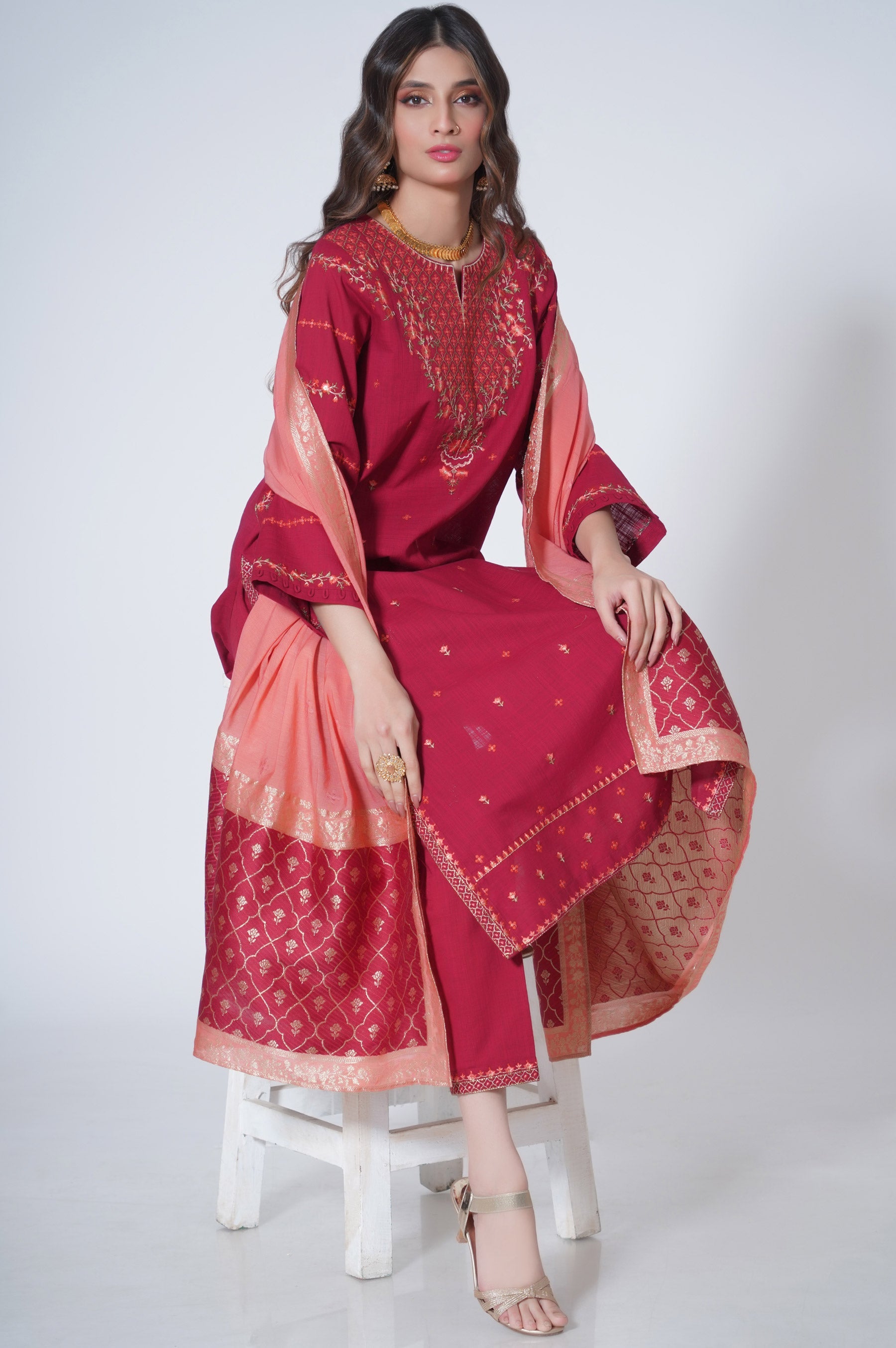 3 Piece Unstitched Embroidered Cotton Slub Suit