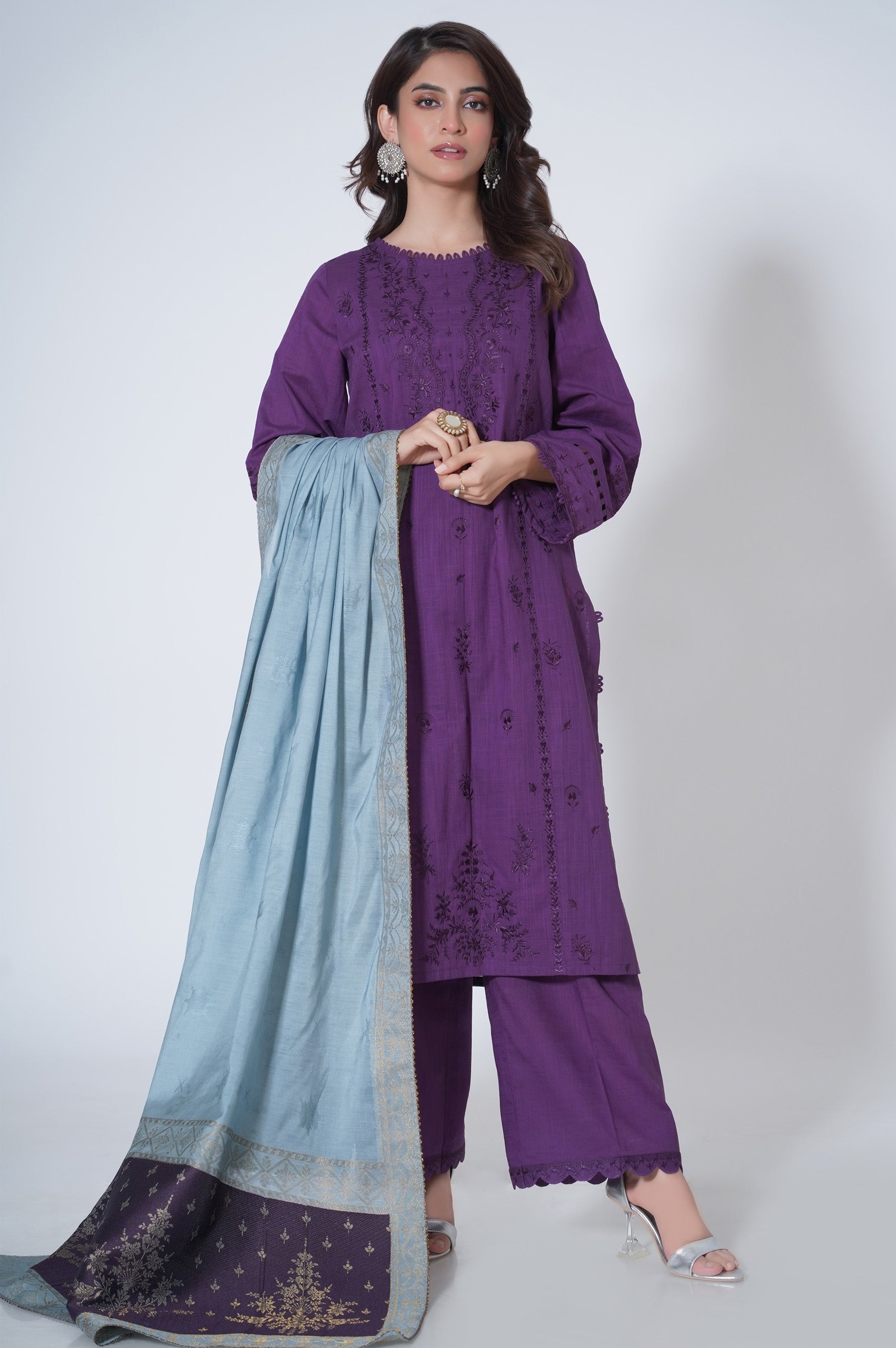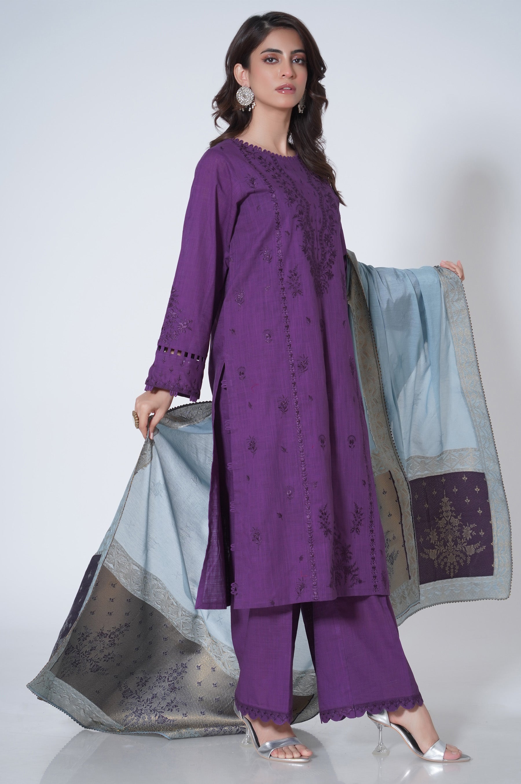 3 Piece Unstitched Embroidered Cotton Slub Suit
