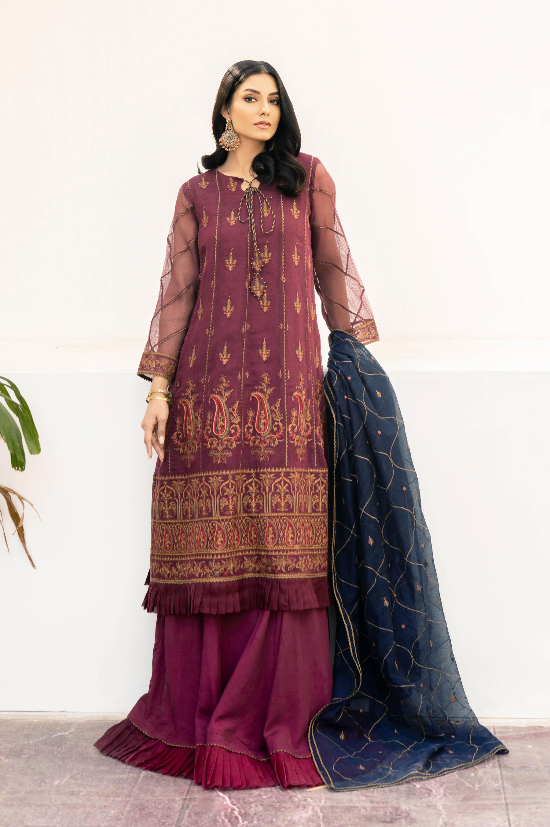 3 Piece Unstitched Embroidered Khaddi Net Suit