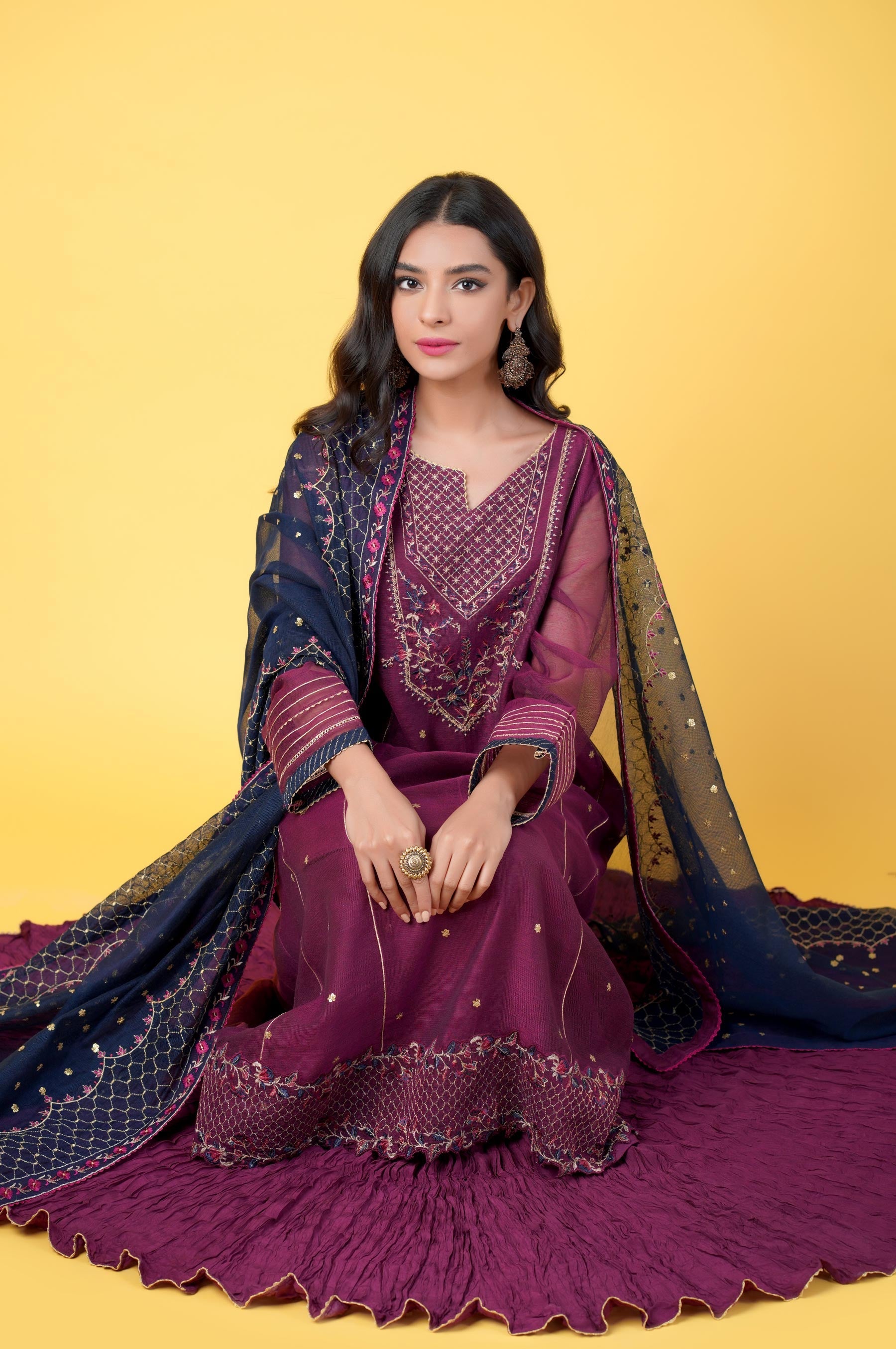 This 3pc unstitched gorgeous ensemble portrays a magnificent composition on the graceful khadi net shirt rendered in fascinating magenta shade. Beautifully enhanced with scintillating floral embroidery with sequins detailing on shirt, this resplendent shirt is paired with an embroidered khadi net dupatta. This artistic outfit is a must have this season to slay the classy look.Kurta/Shirt Design: