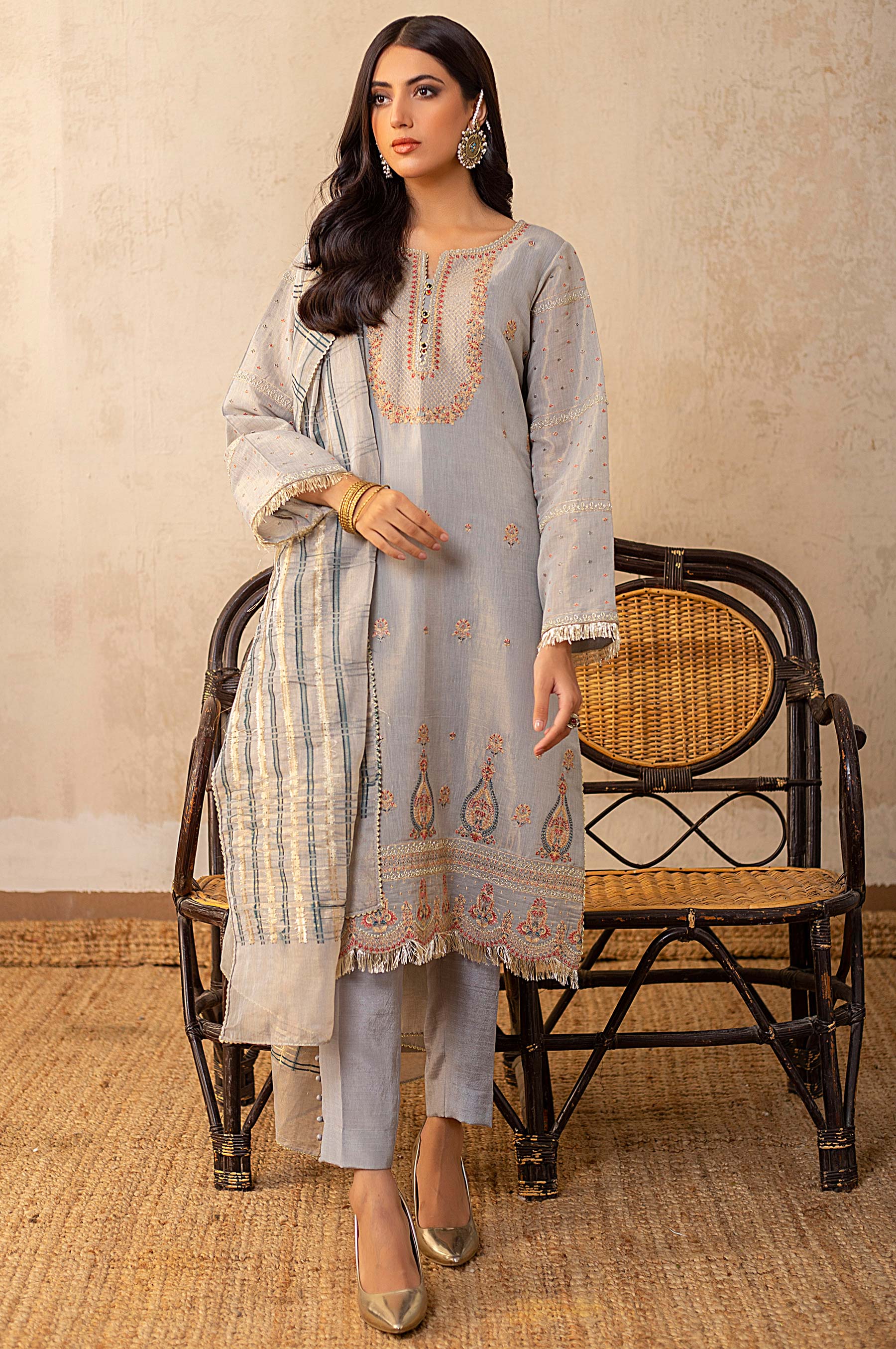 A refreshing sky blue ensemble; a beautiful mysuri shirt with intricate resham and dori embroidery. Paired with checkered weaved dupatta and rawsilk pants, this elegant ensemble is a pastel lovers dream.