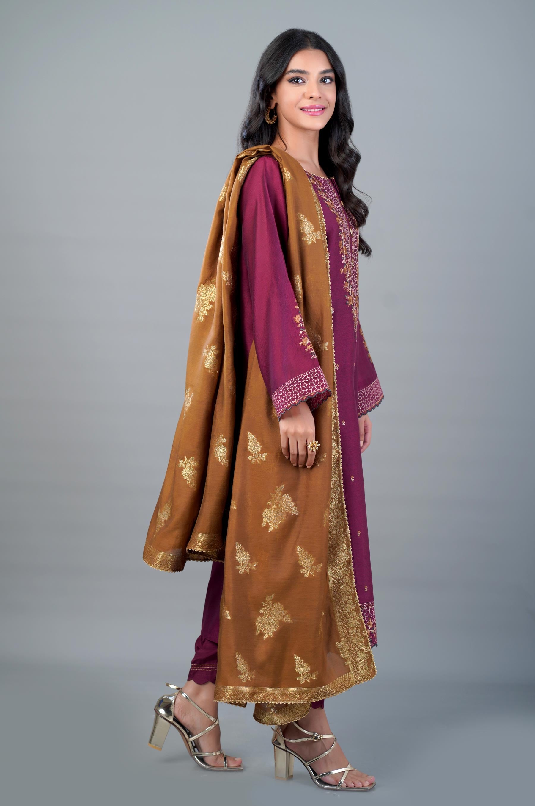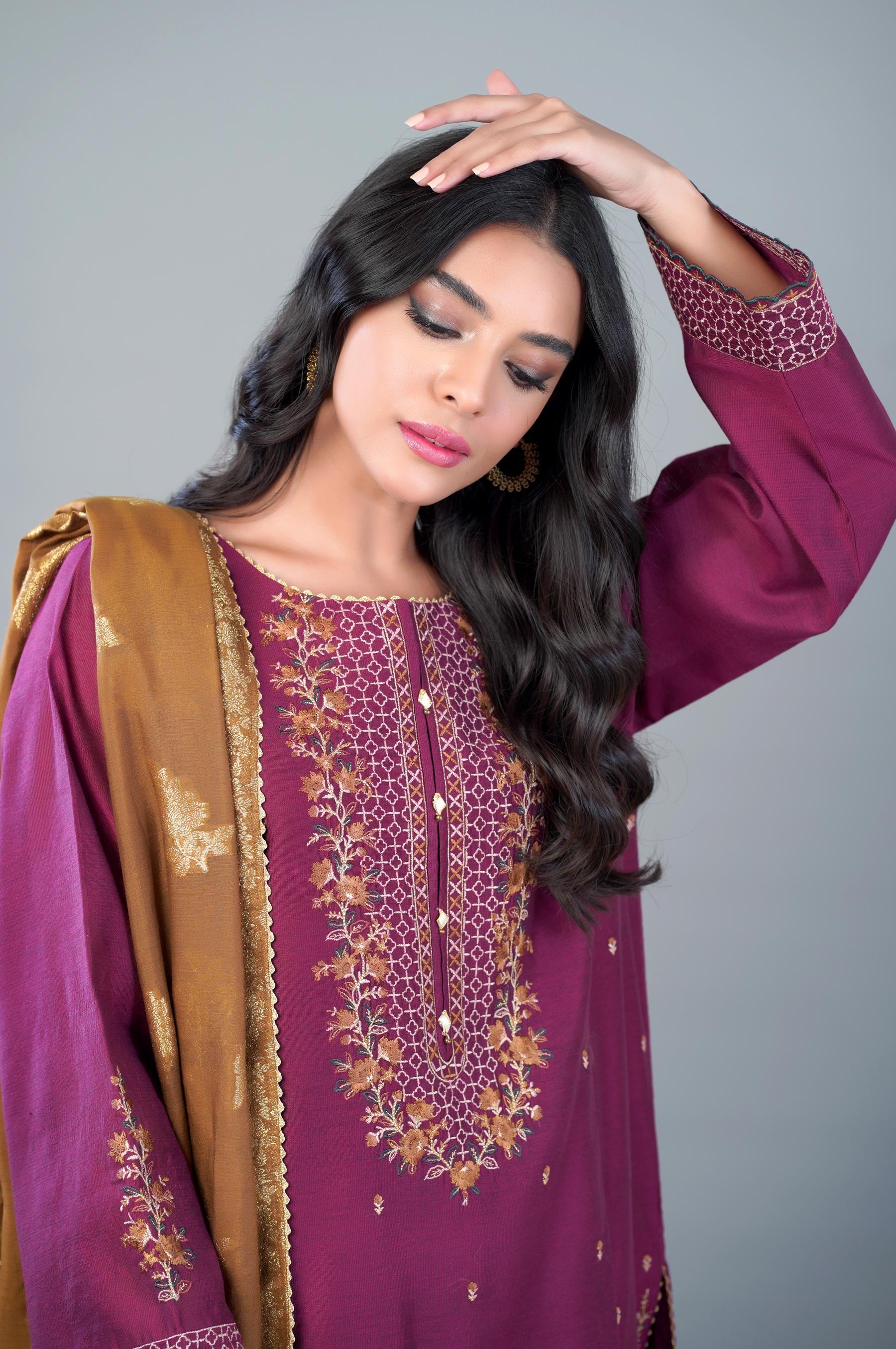 3 Piece Unstitched Embroidered Cotton Net Suit