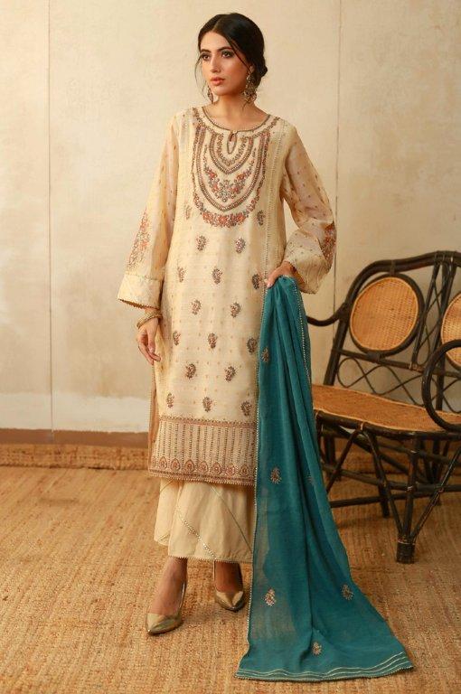 3 Piece Unstitched Embroidered Jacquard Khaddi Net Suit
