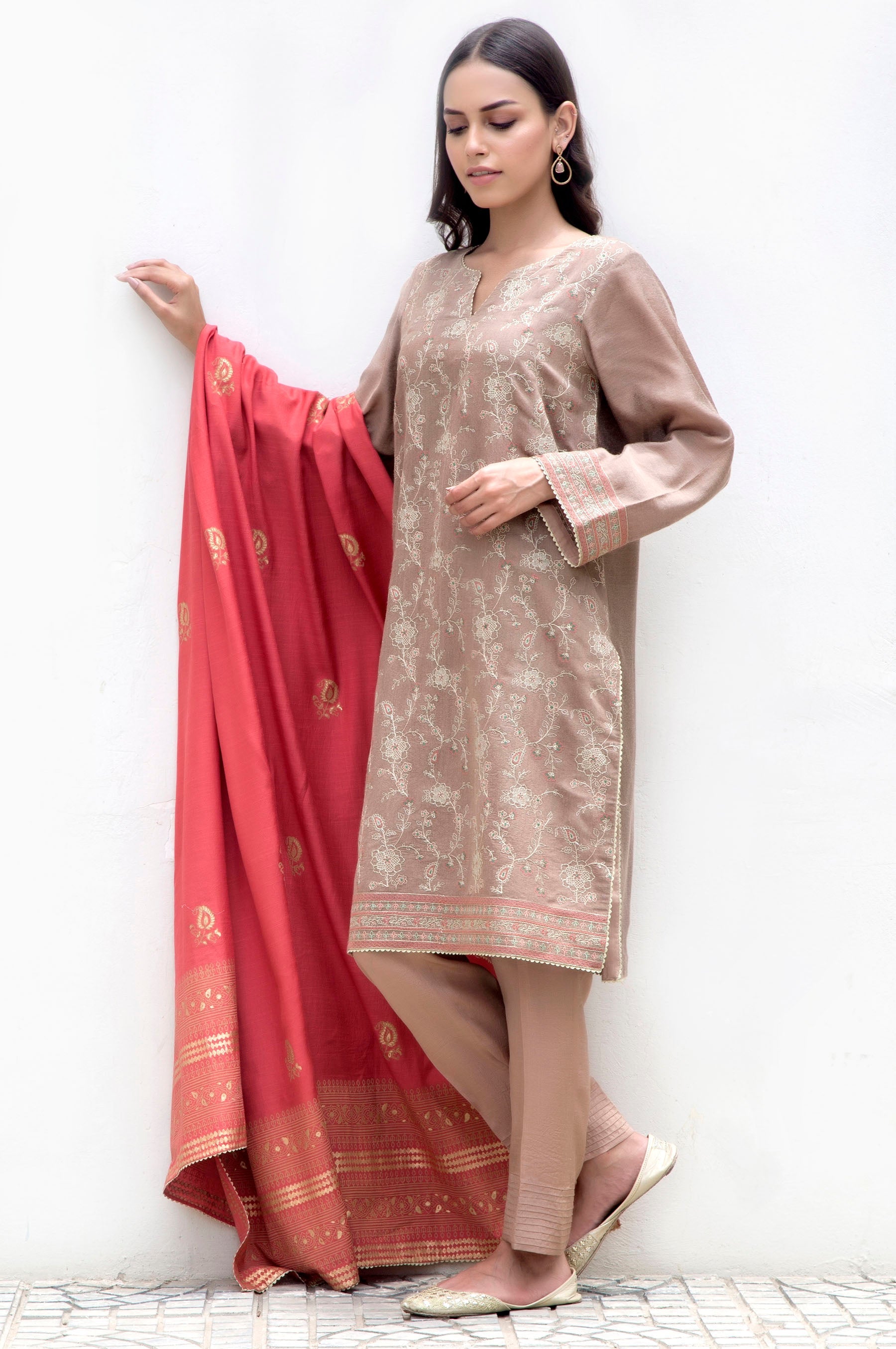 A Glorious floral embroidered shirt with an exuberant contrast Block-Printed dupatta, is the best pick this season