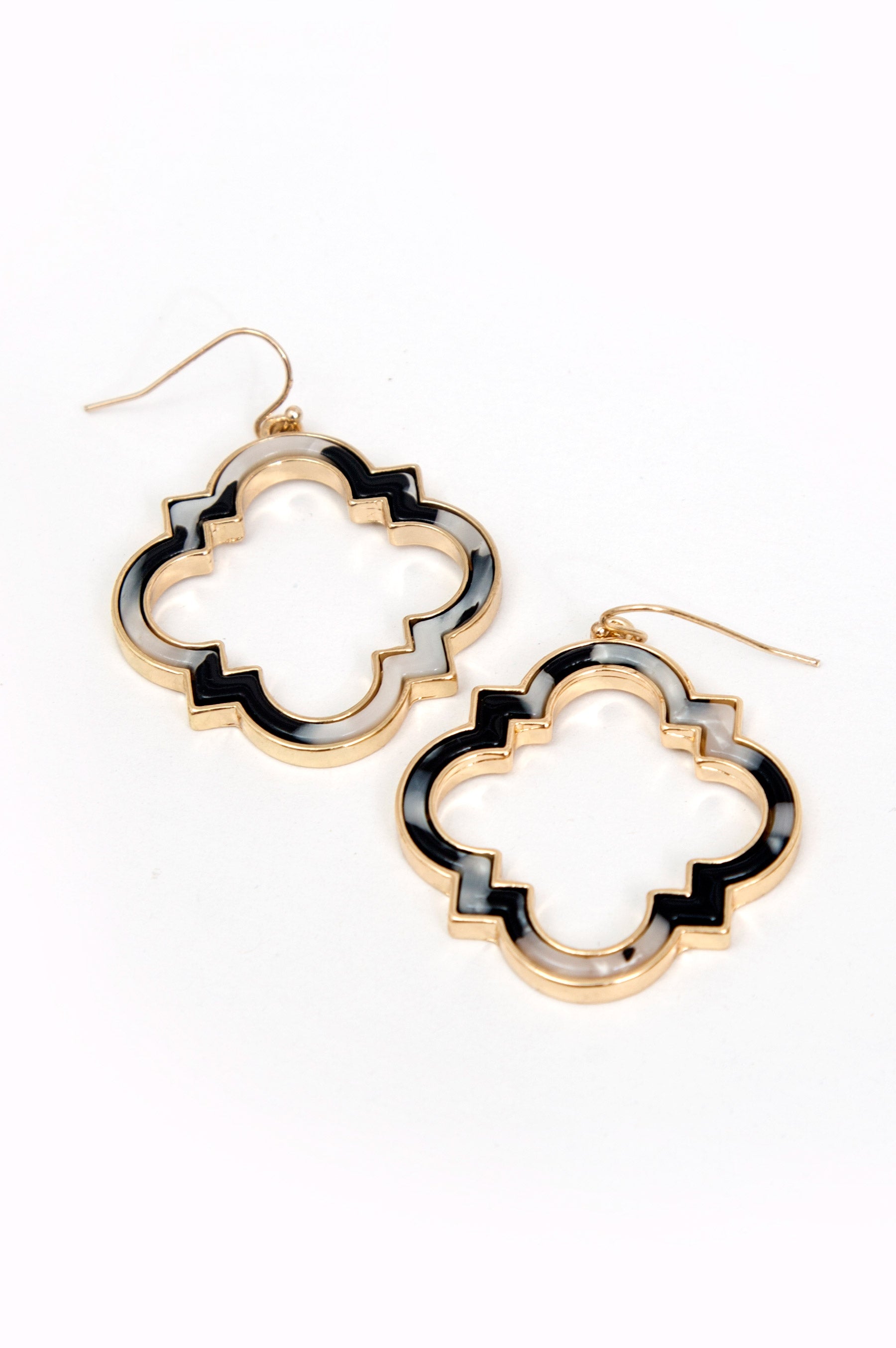 Two-tone acrylic and metal drop earrings in a clover shape is your new fashion statement