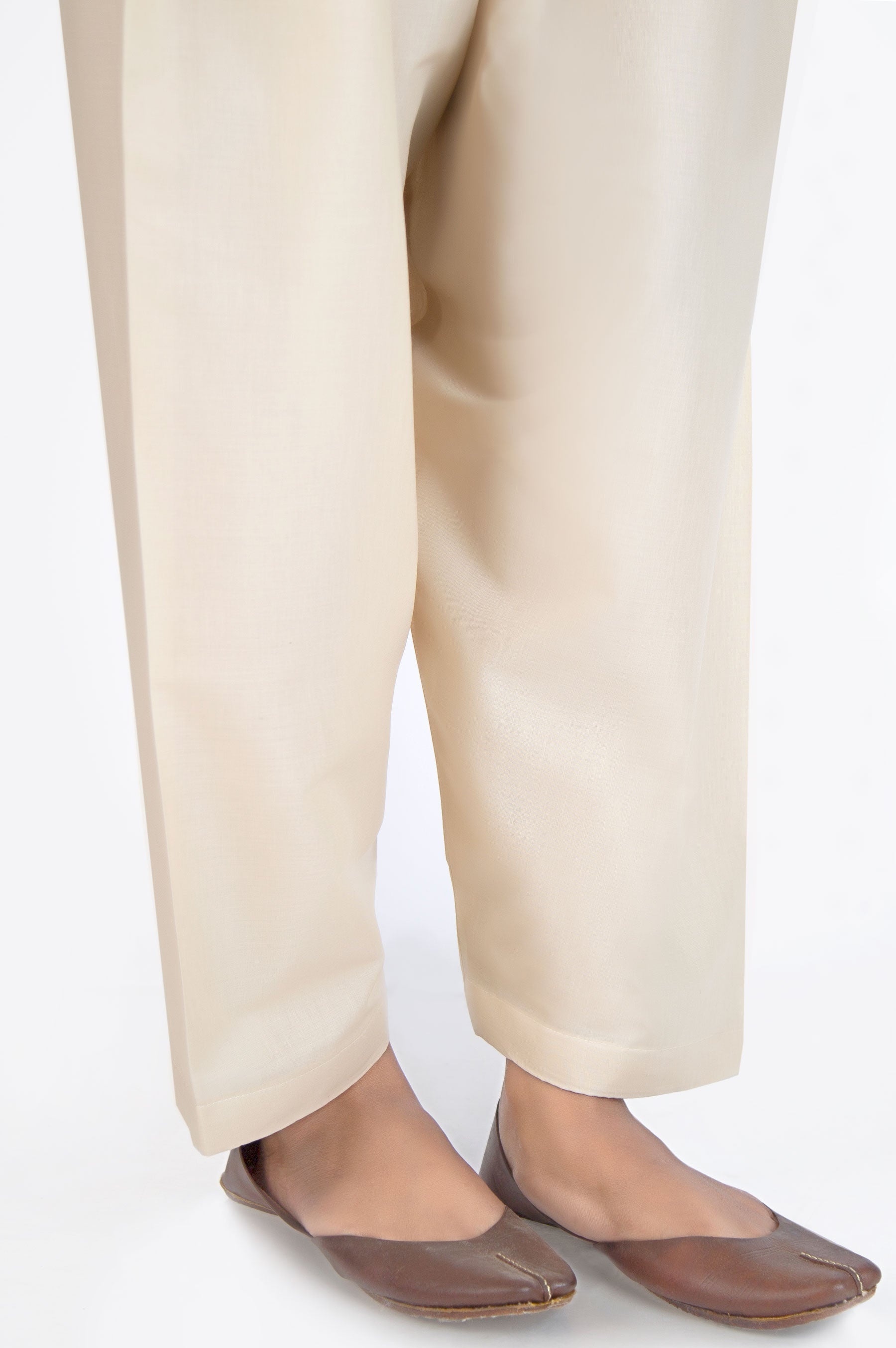 Elevate your eastern attire effortlessly with this comfortable cambric beige shalwar to make a timeless appearance.