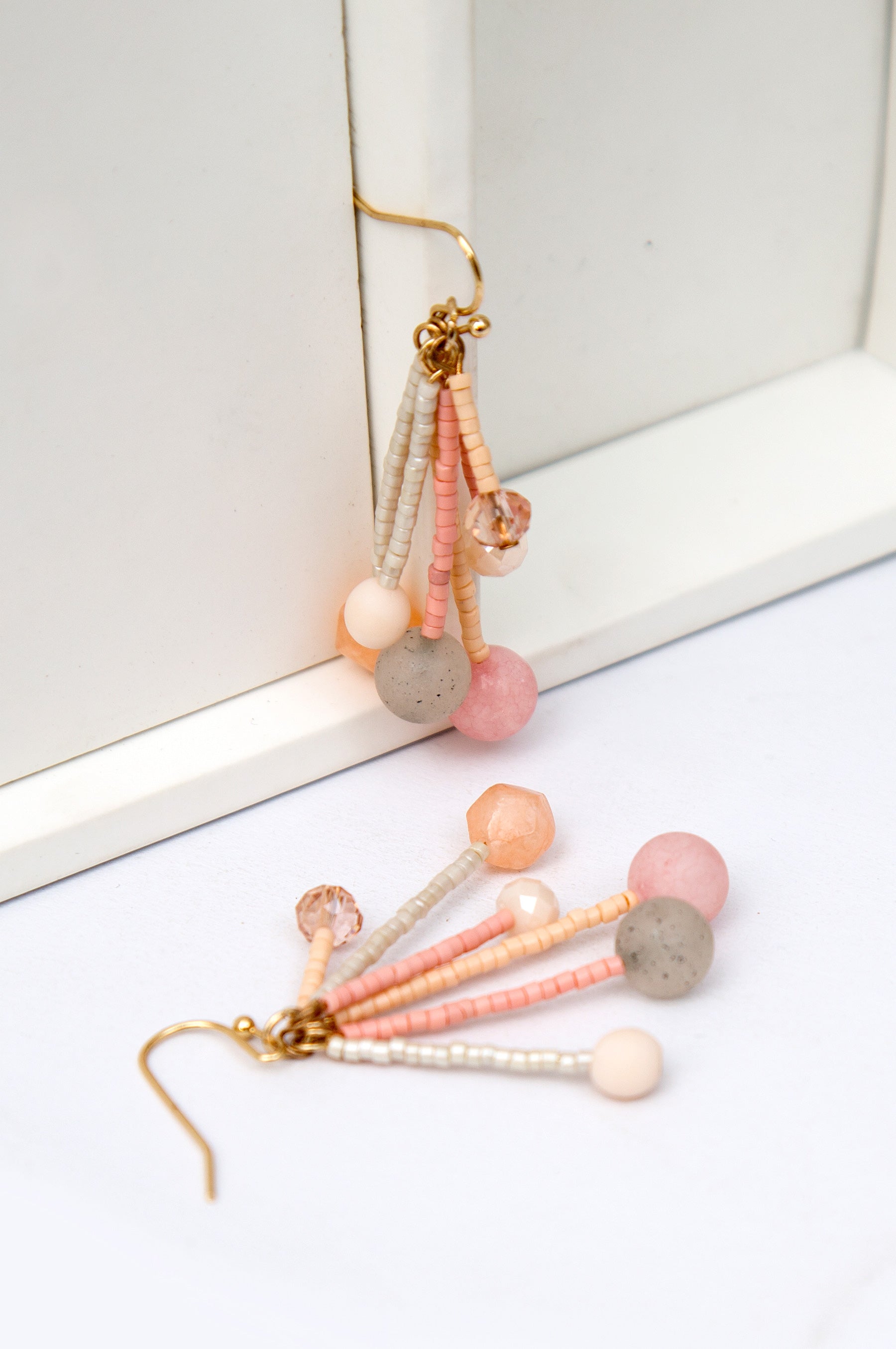 Add a trendy touch to your ensembles with these multi faceted beaded mid length tassel earrings,