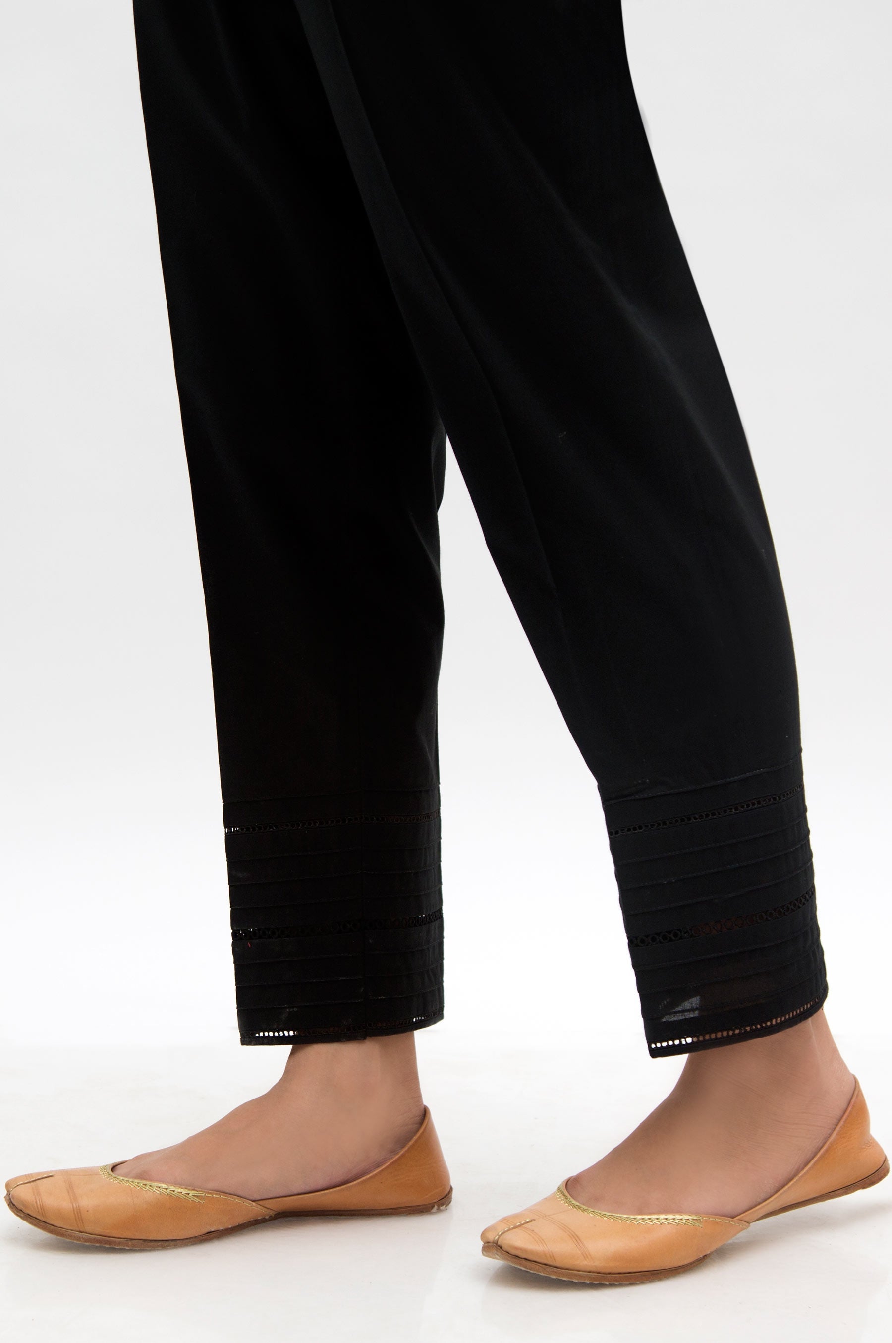 Embellished pants with pintex and ladder laces.
