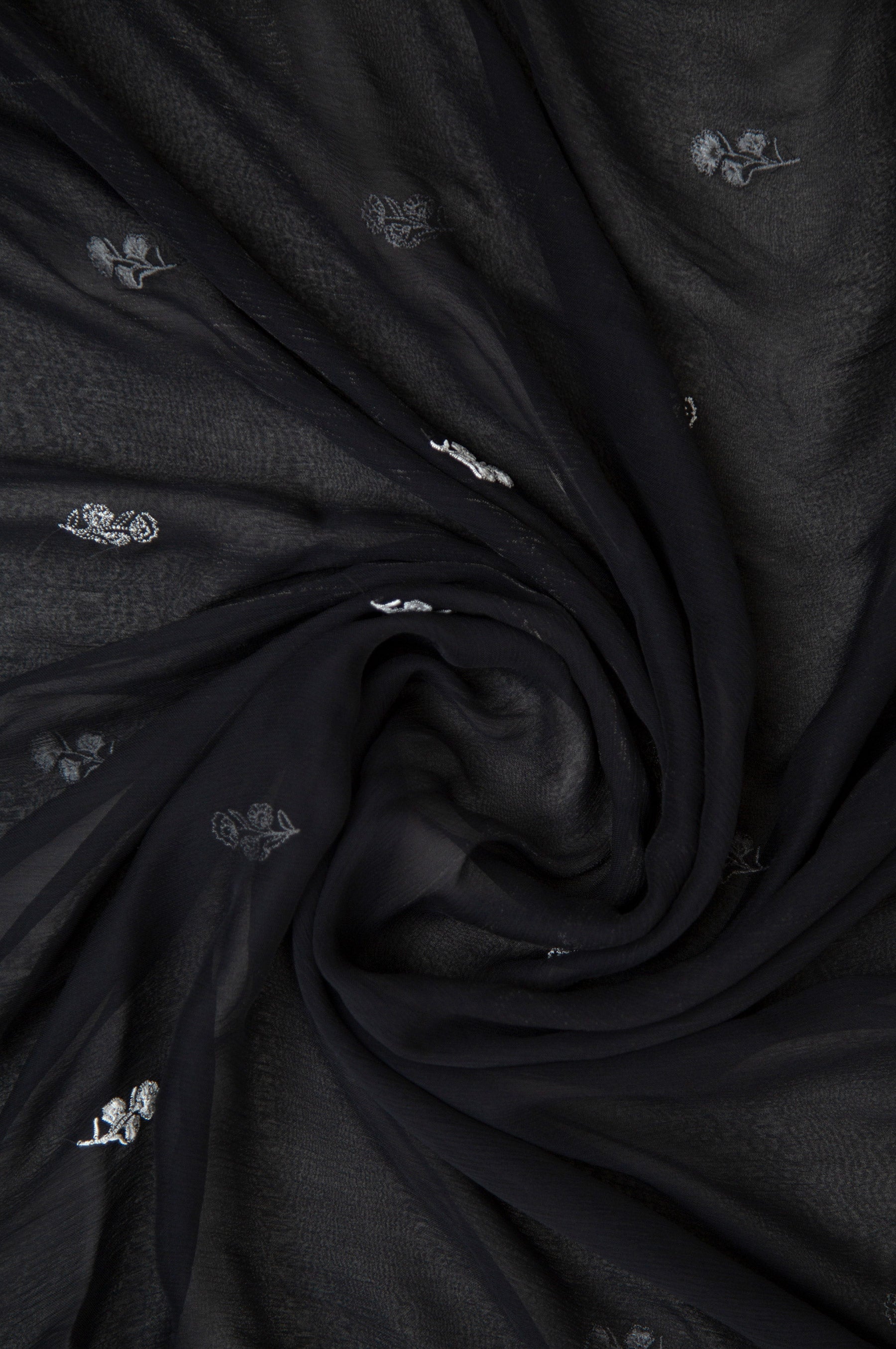 Black chiffon dupatta features all over floral embroidery with unique technique. lace has been used on all corners to give a finished look. The dupatta can be