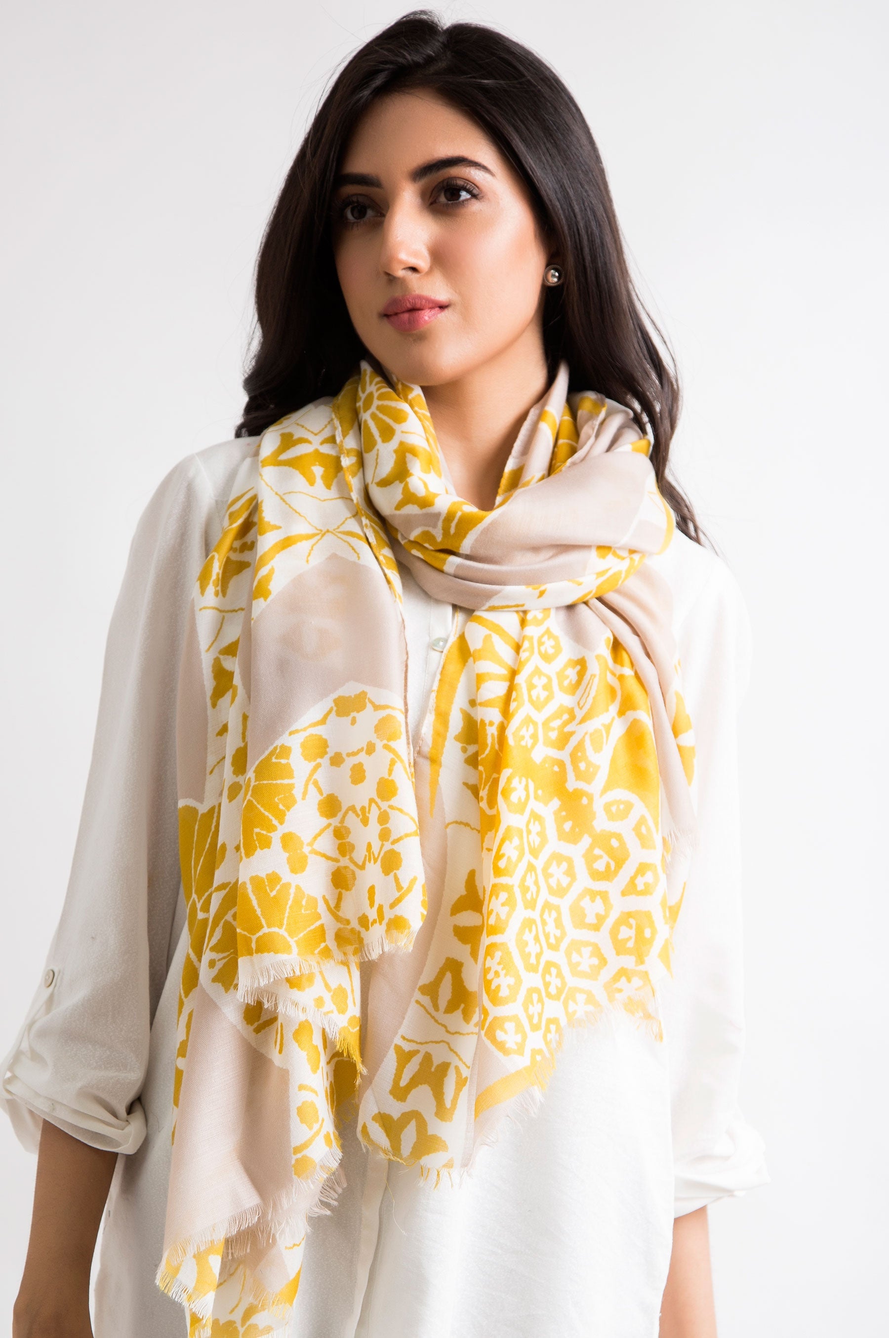 This Chinoserie beauty is an epitome of Royal. Worked in a rich palette of bright colored hues, this scarf can add a pop of color to your solid outfits.