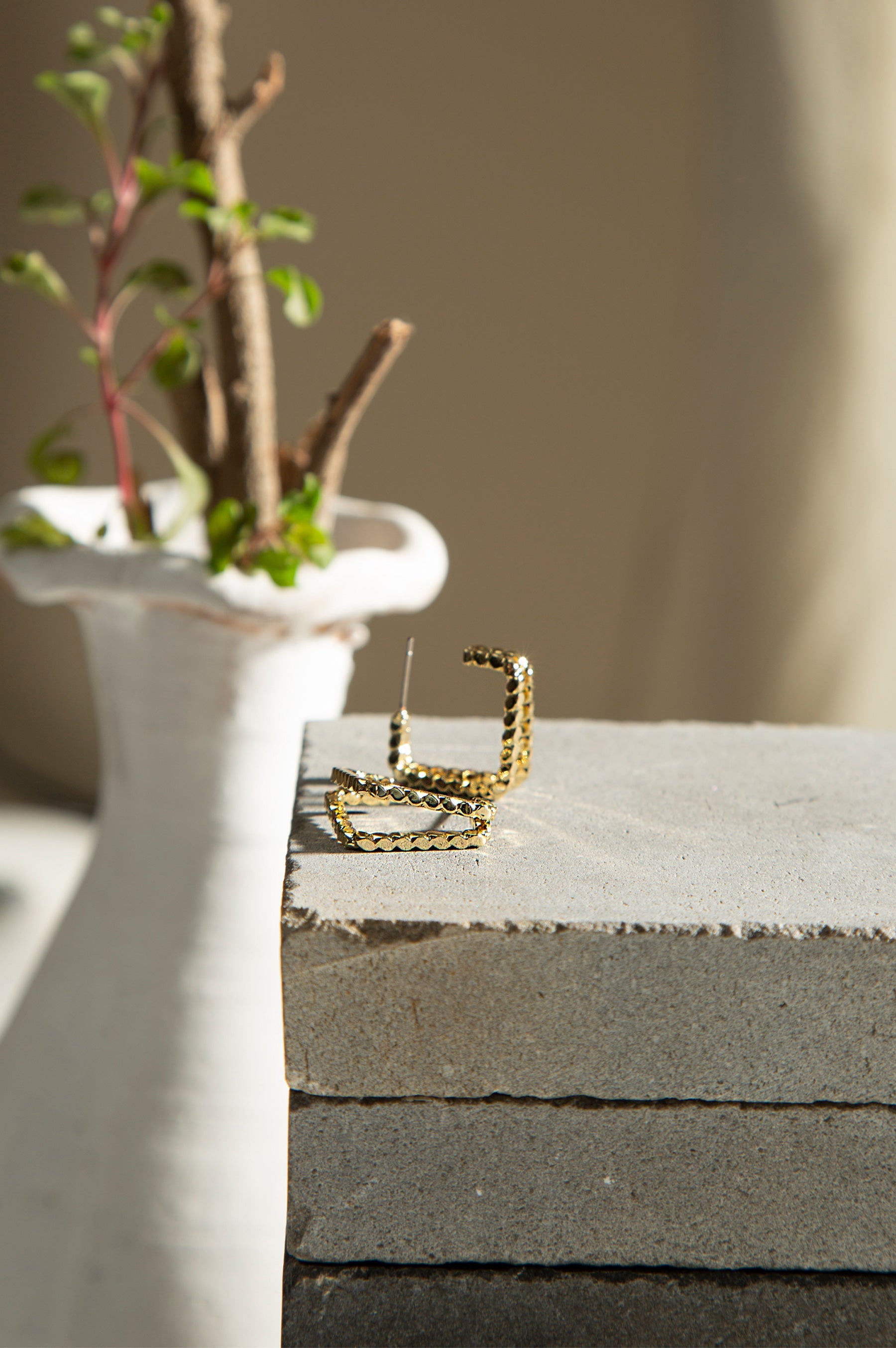 These golden hoop style earrings are carefully made with intricate detail and feature a delicate unique shape with a touch of white and gold, perfect for complementing any outfit on any occasion.