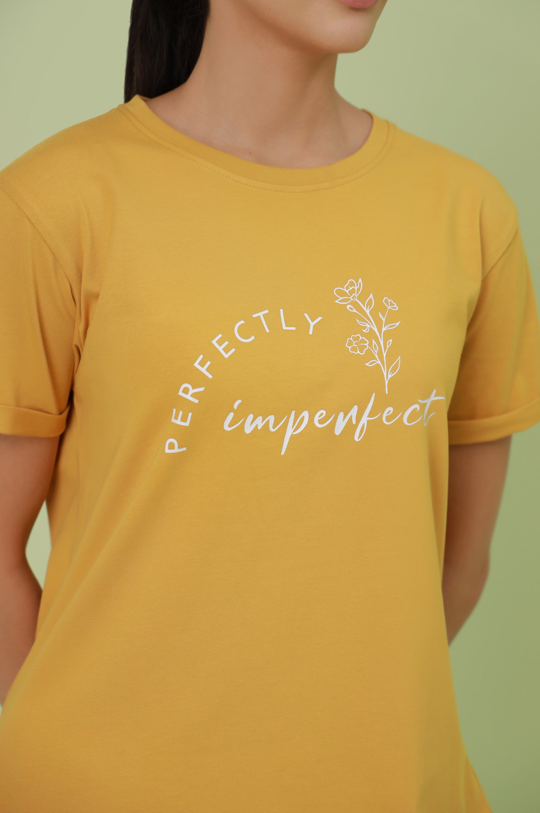 This stylish mustard crew neck shirt features half sleeves and a regular length, making it the perfect addition to your loungewear collection.