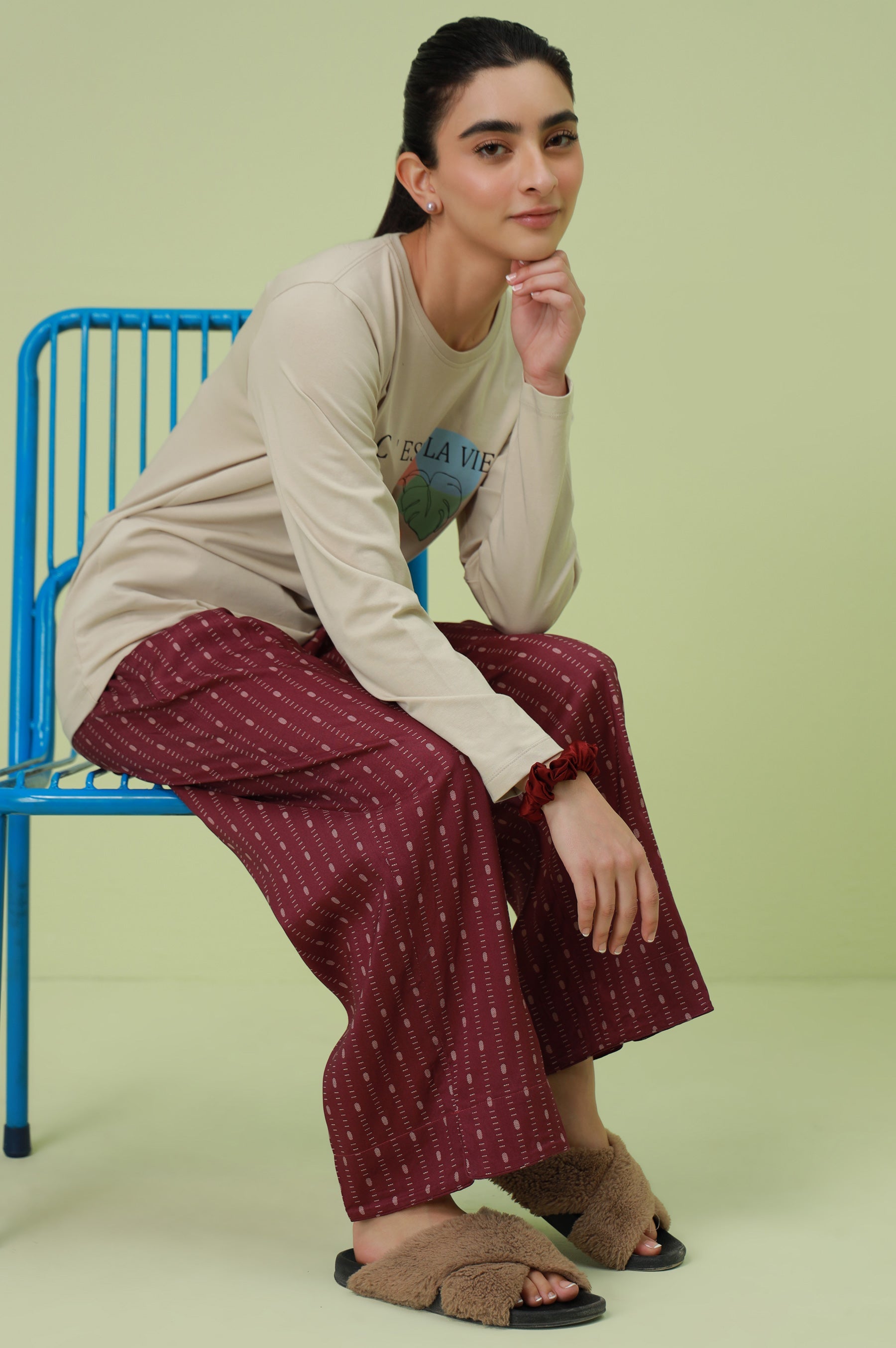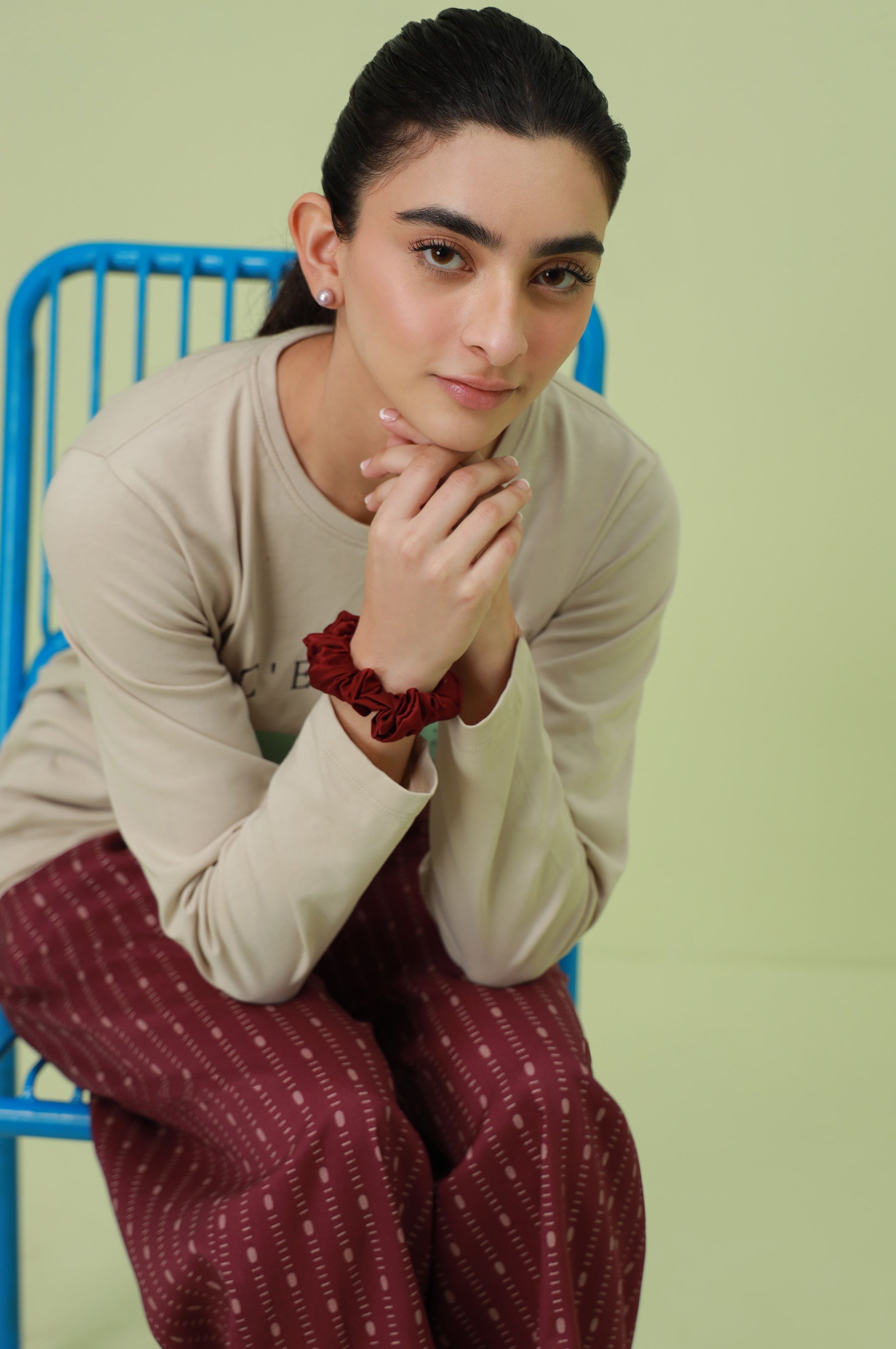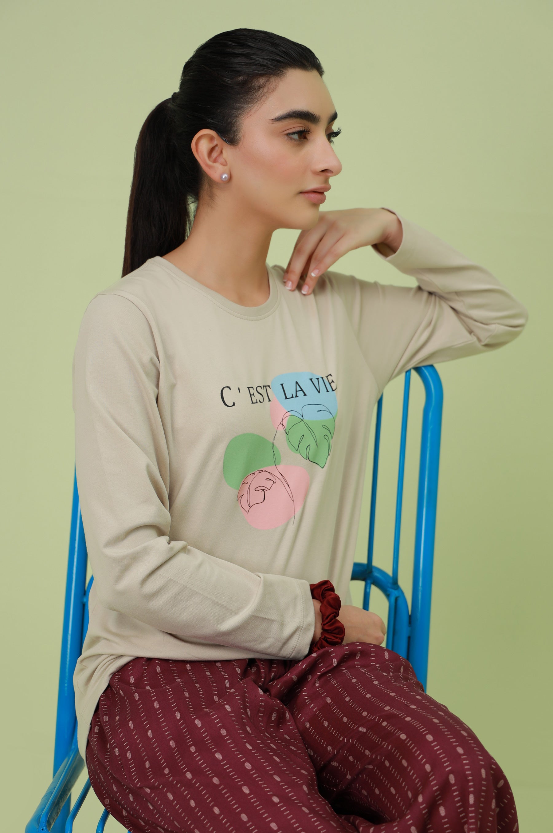 Elevate your everyday style with this versatile beige crew neck full sleeve tee. Crafted with care, this shirt features a regular length that can effortlessly be paired with a variety of comfortable bottoms or sleek straight pants.