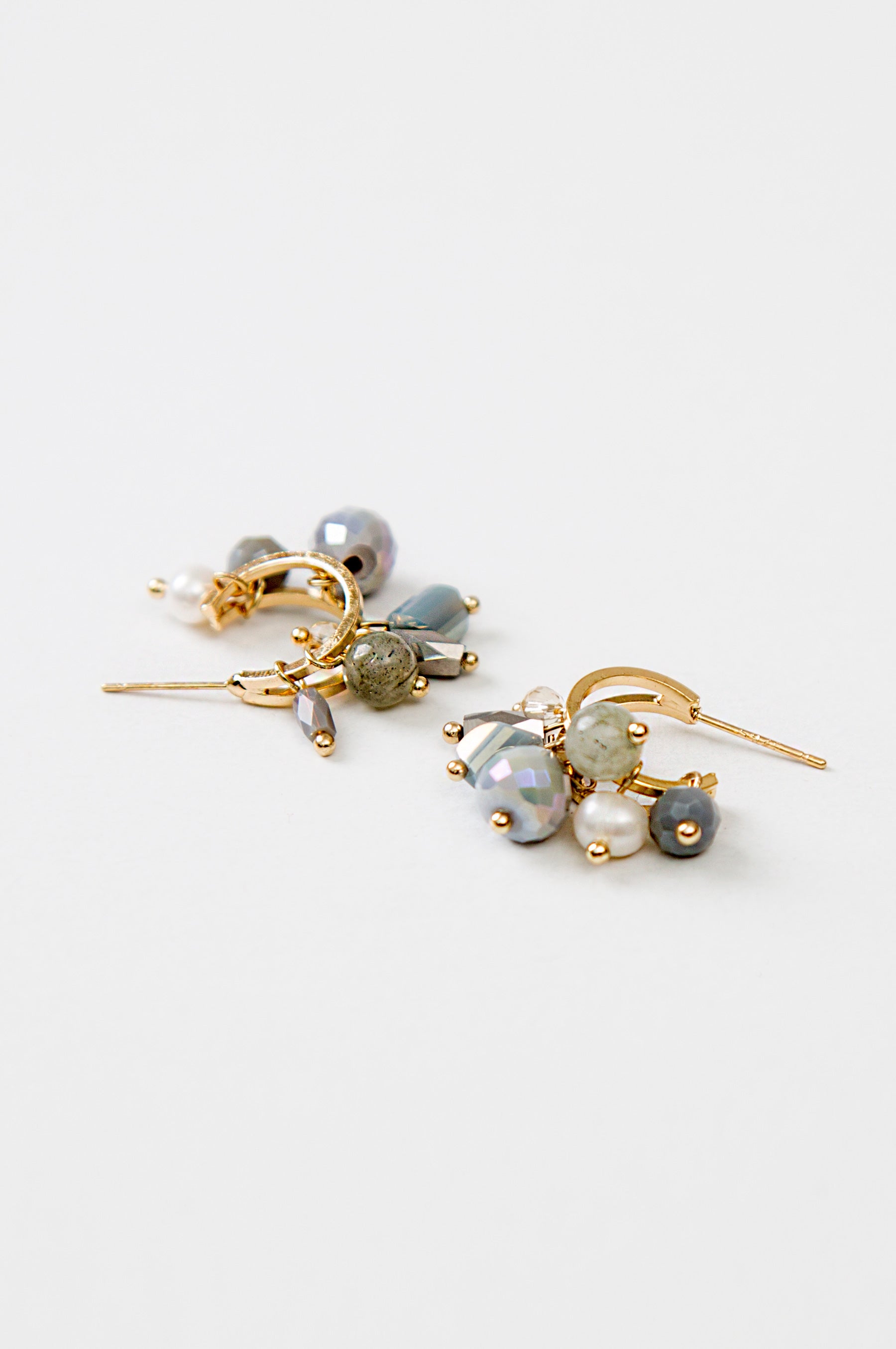 A fun cluster of crystals add color and charm to these small hoop earrings.