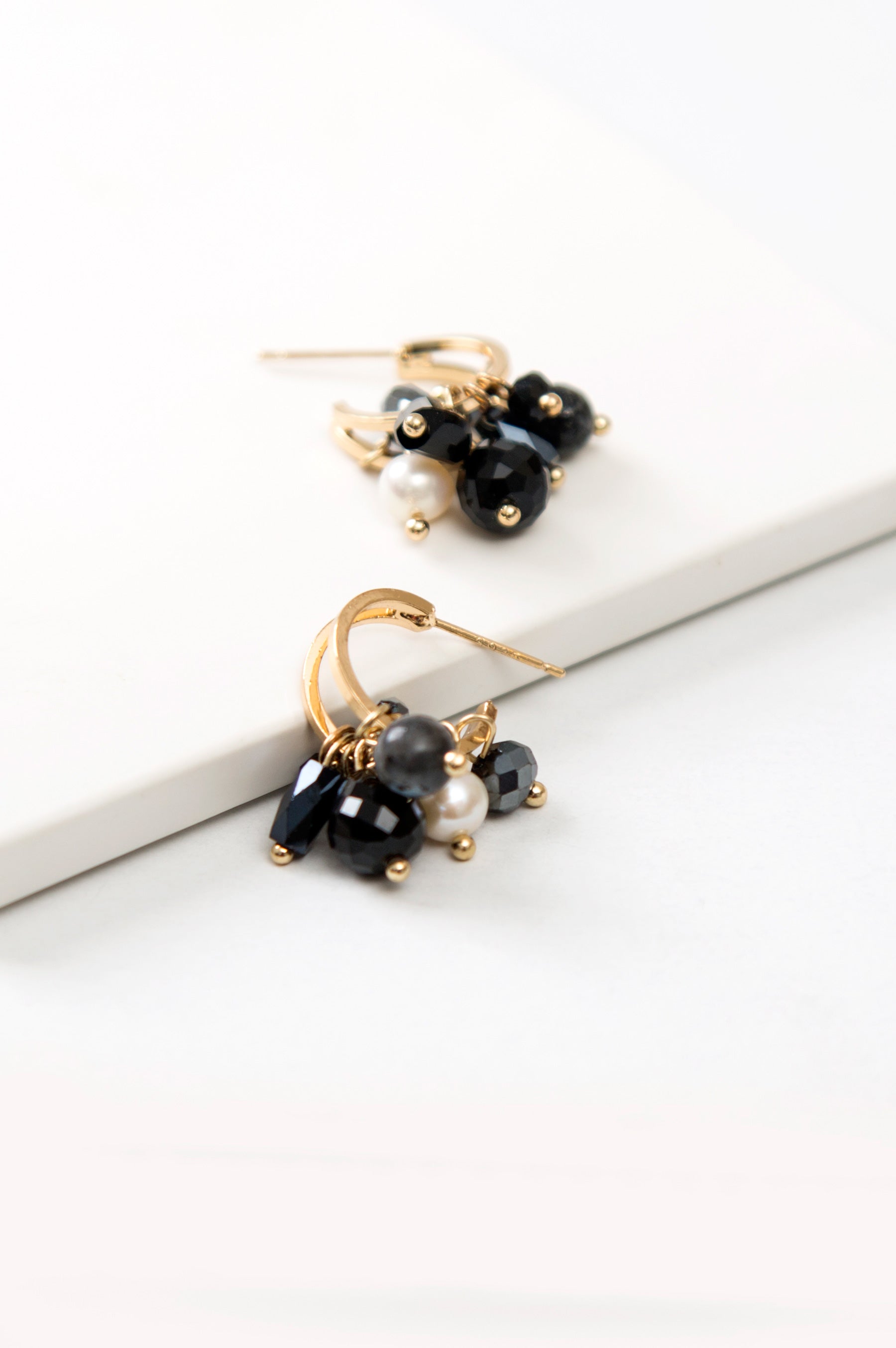 A fun cluster of crystals add color and charm to these small hoop earrings.