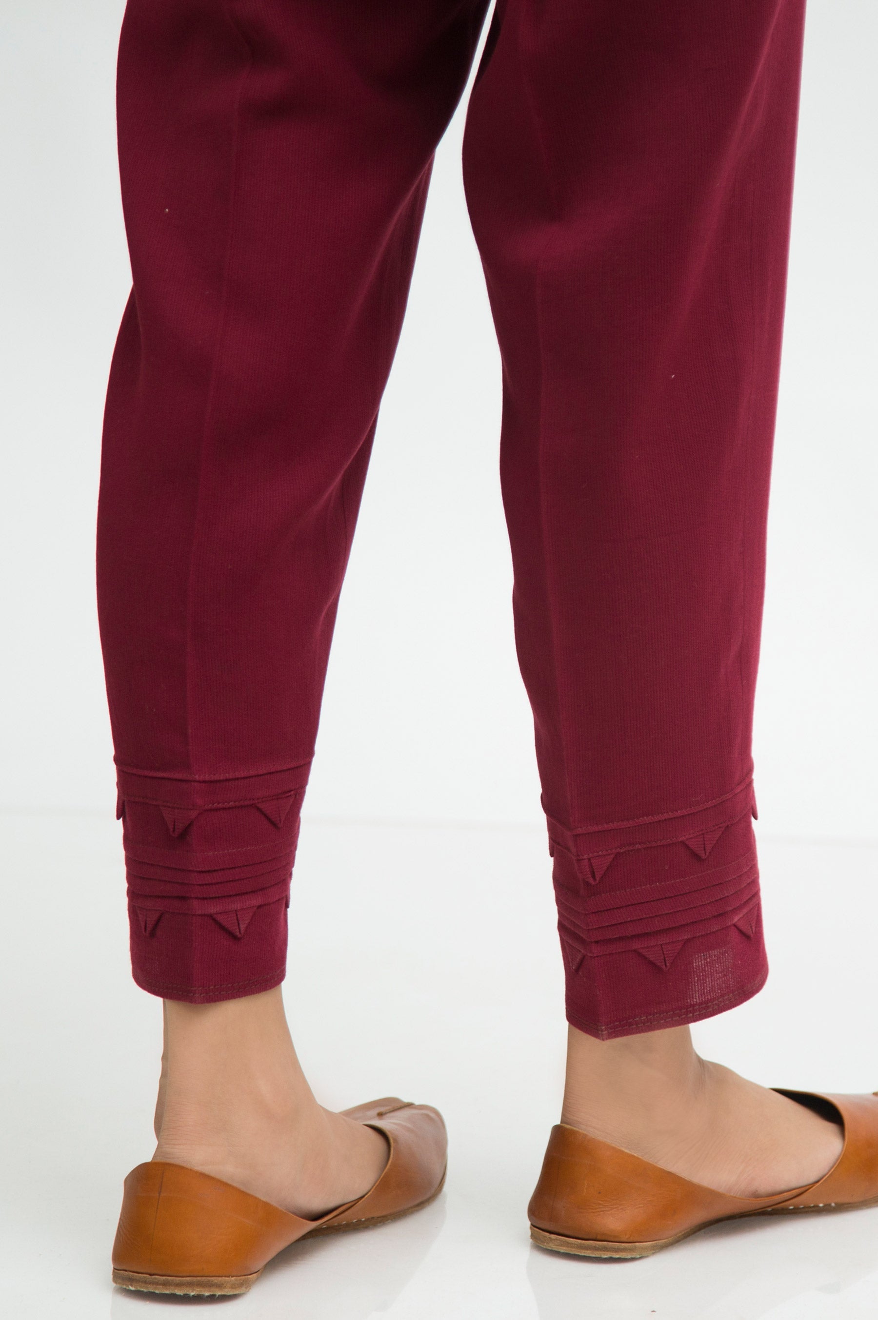 Embellished cottel cigarette pants, detailed with fabric manipulation and pleats, are a must have addition to your wardrobe.