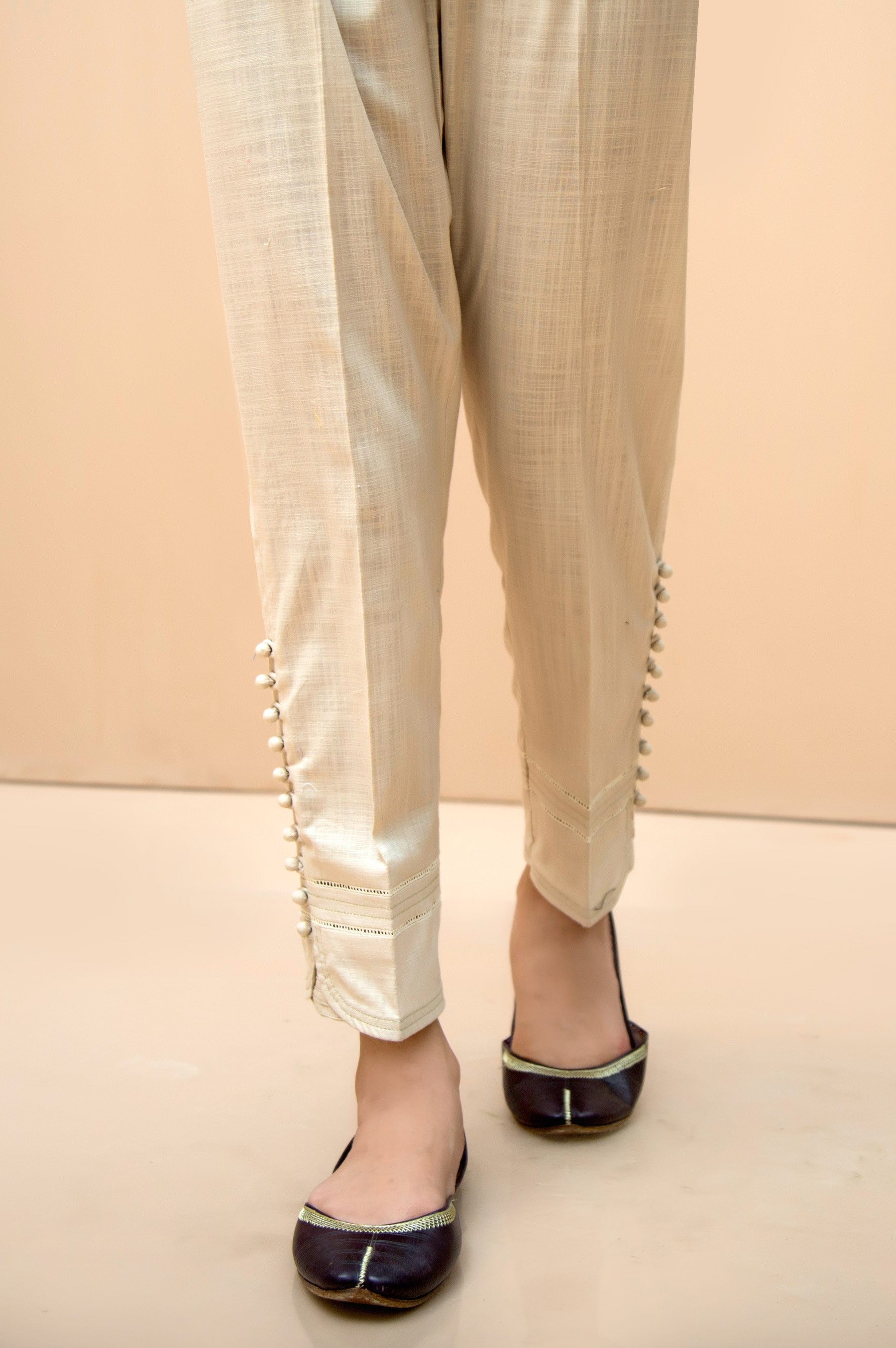 Tulip cut hemline and embellished with ladder lace, running stitches and side loop buttons.