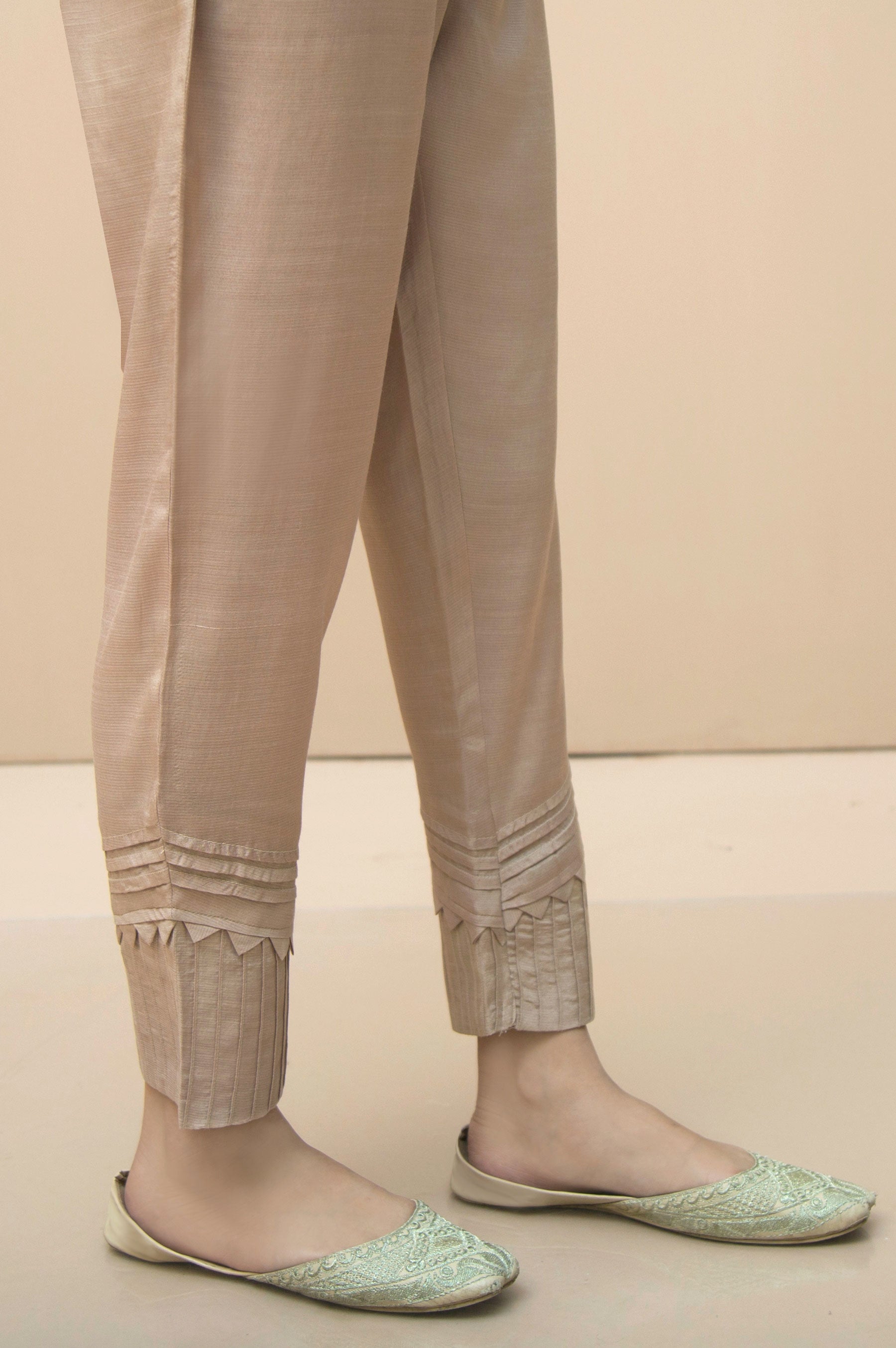 Raw Silk Pants with scallops, plates and pintex embellishment.