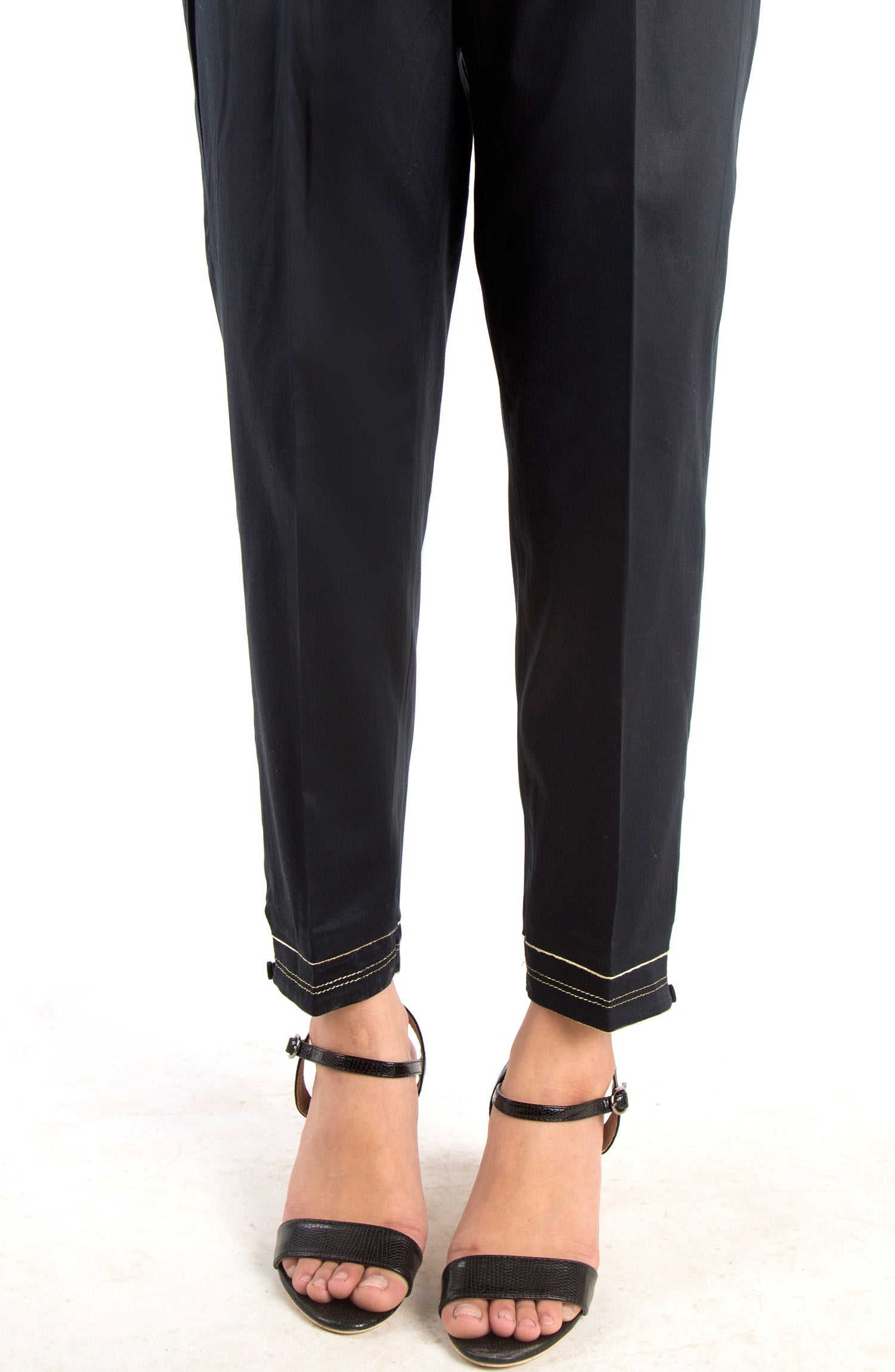 Cigarette pant embellished hemline with zari stitch and charma. Side hoop with loop button.