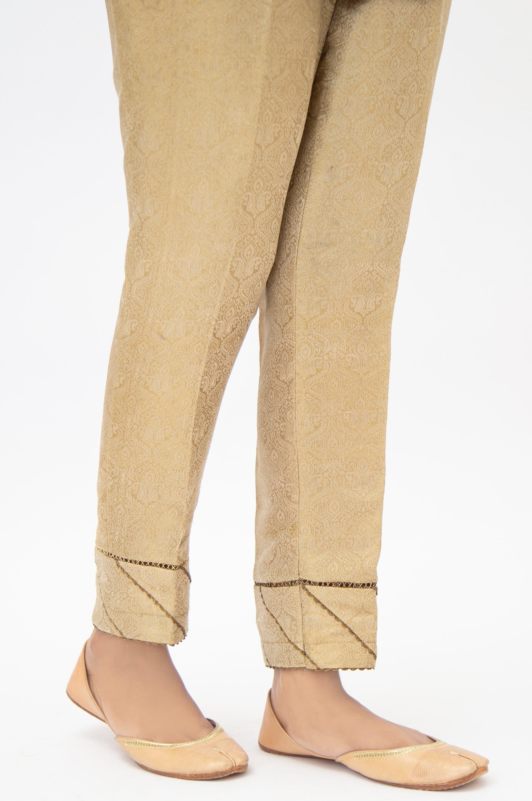 A gold jamawar pants embellished with combination of laces to make more glamorous.Pair this versatile piece with any luxury outfit.