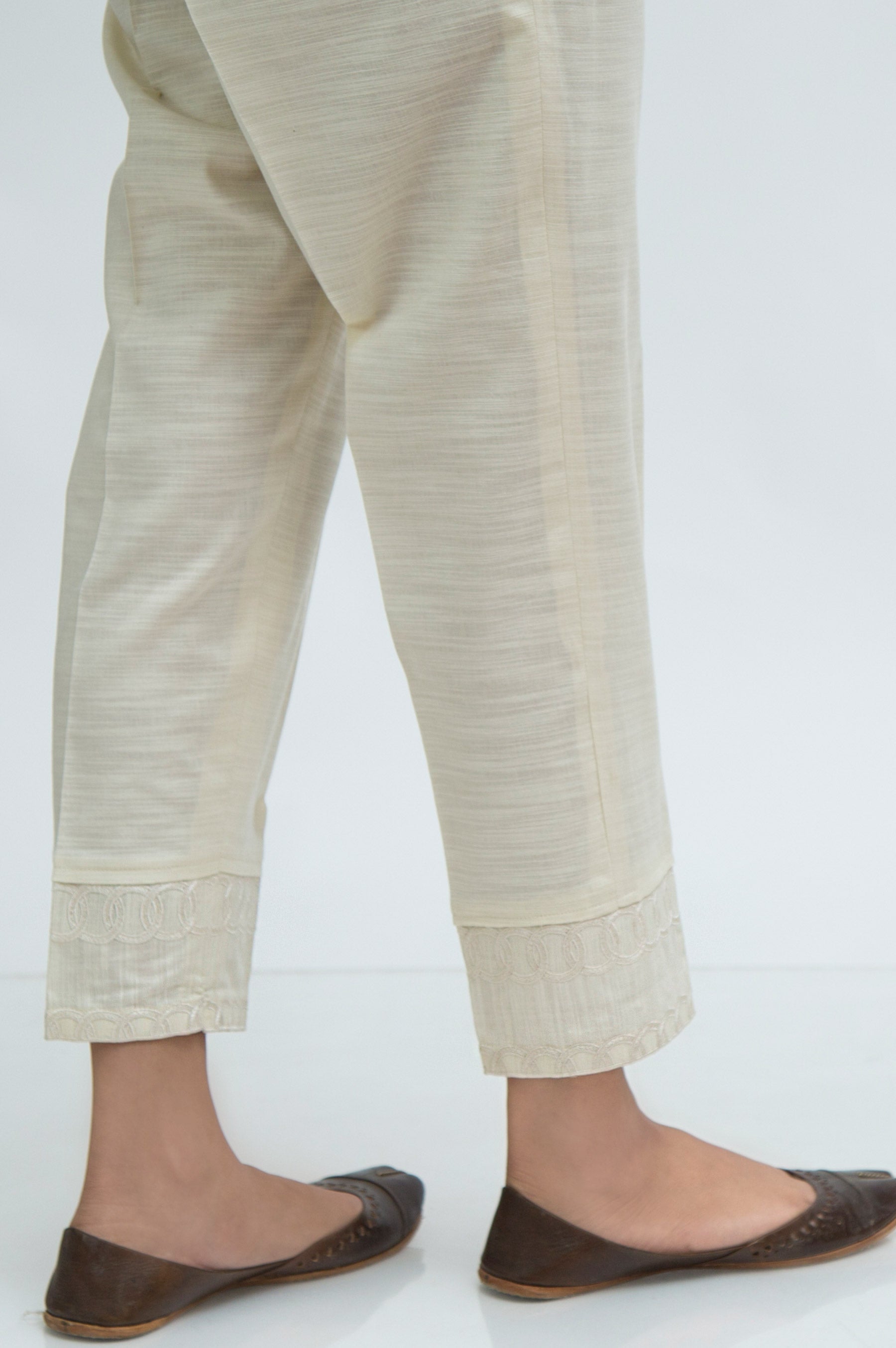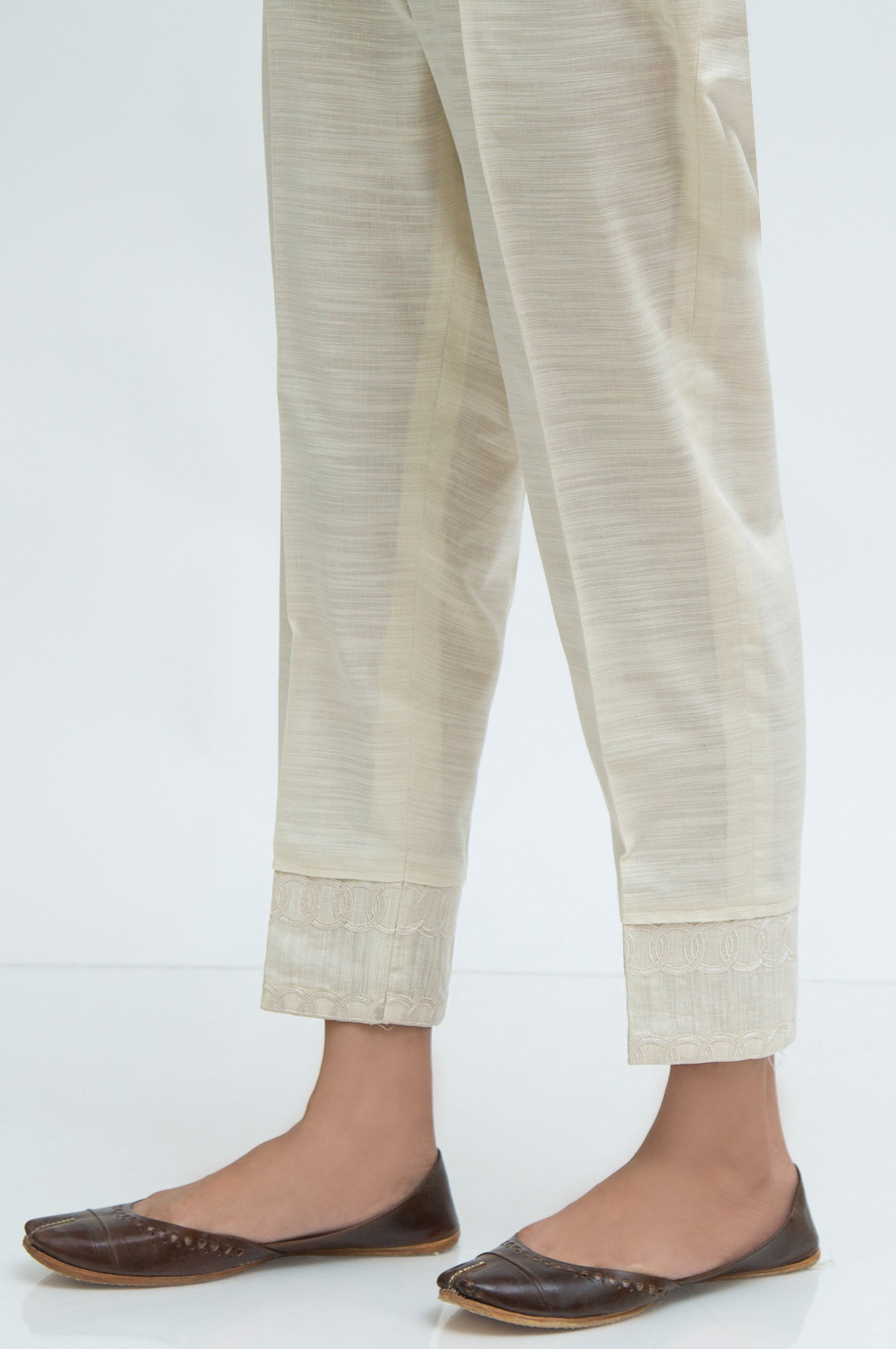 This khaddar cigarette pants with embroidered hem is a wardrobe essential.