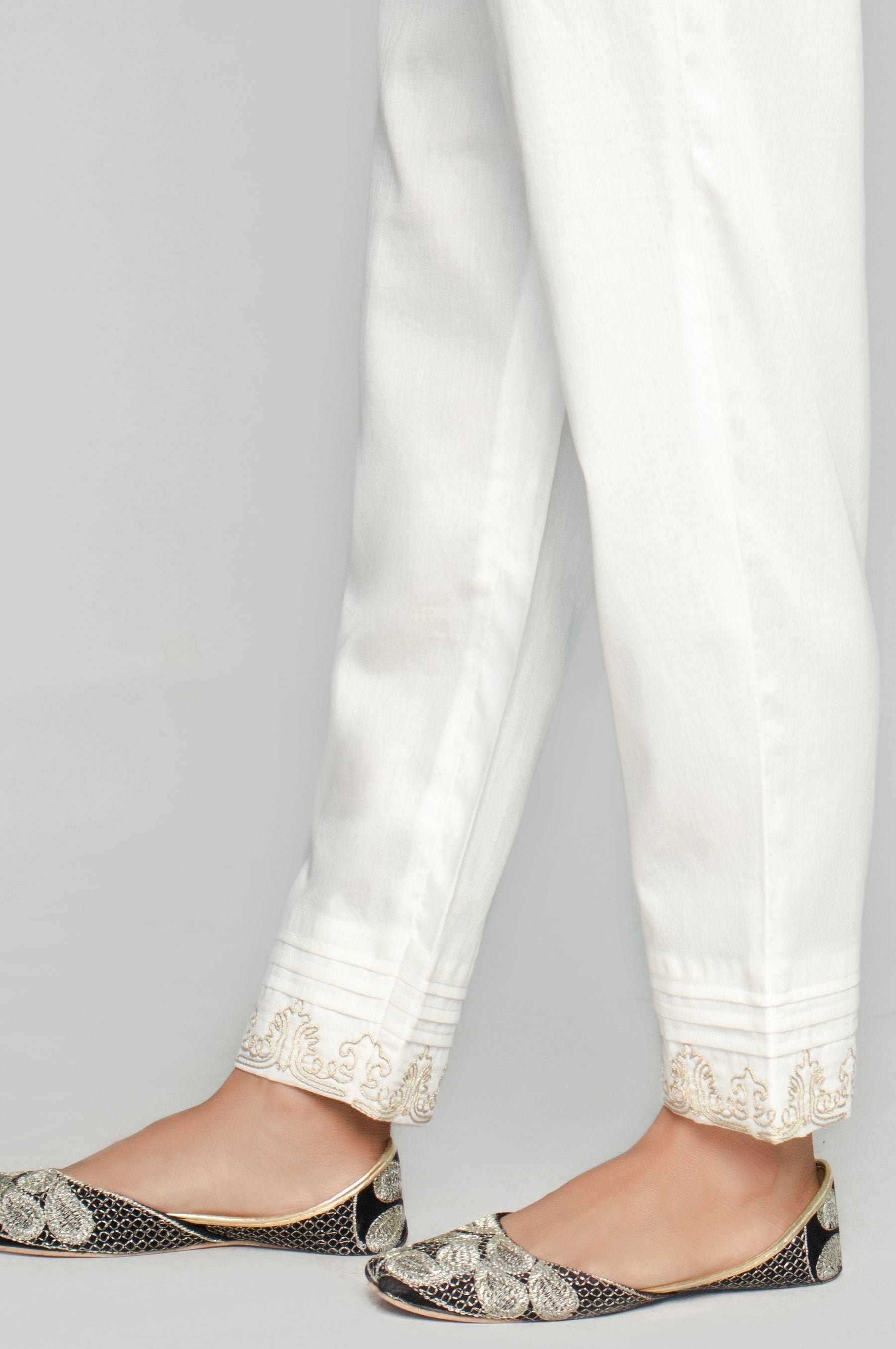 Cotton Satin, Embroidered/Embellished Cigarette Pants