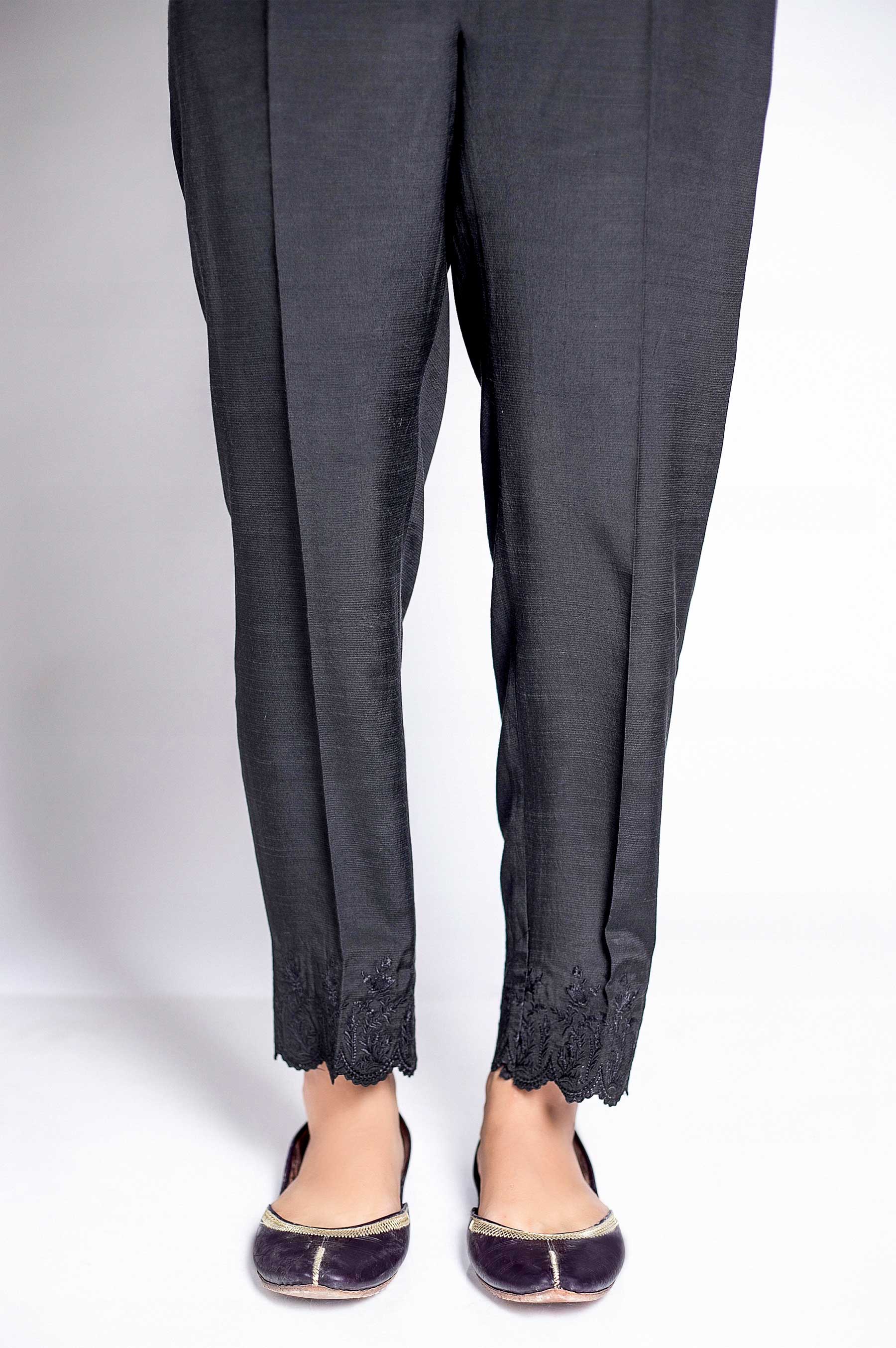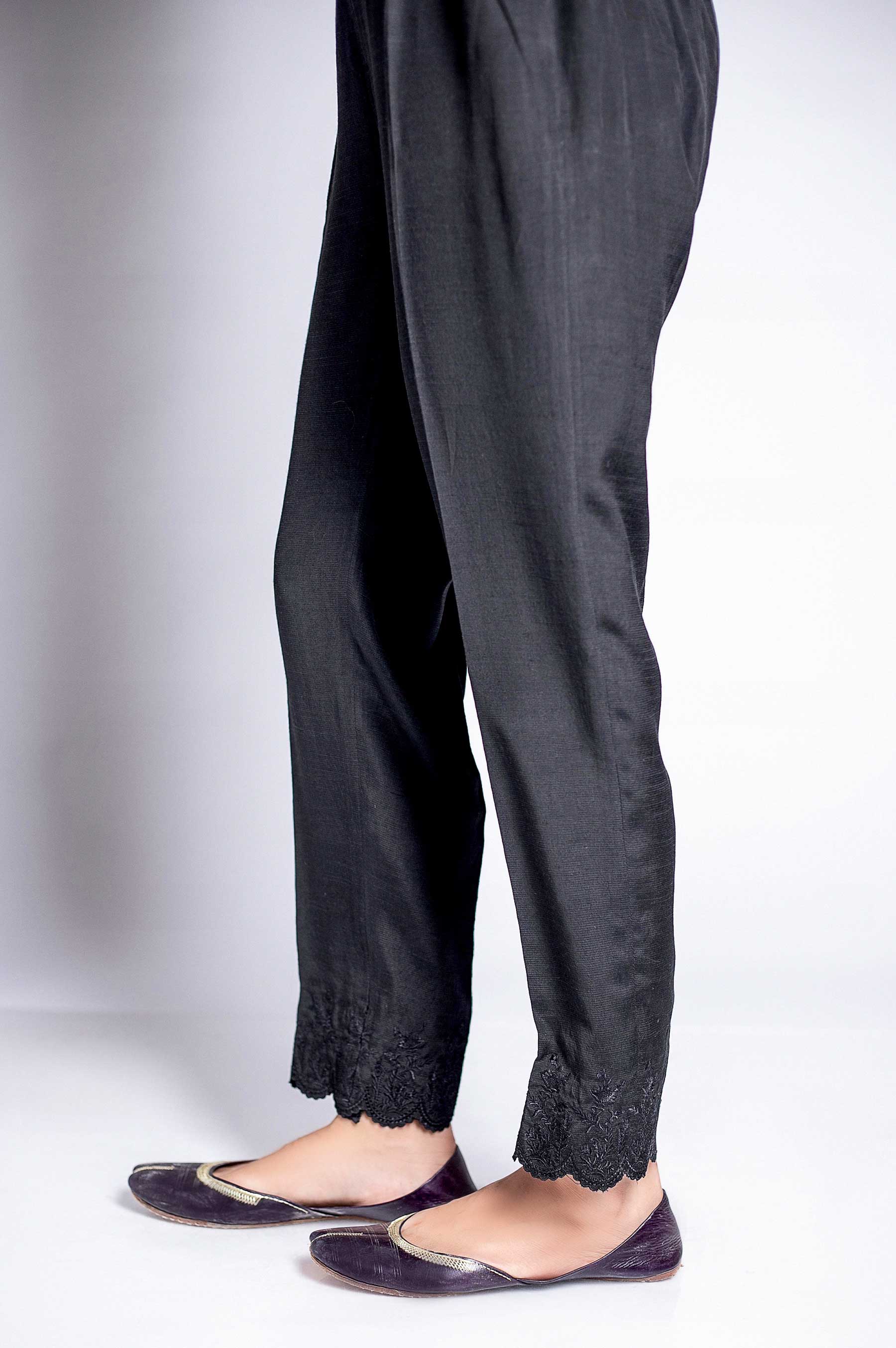 Raw Silk Embroidered Cigarette Pants
