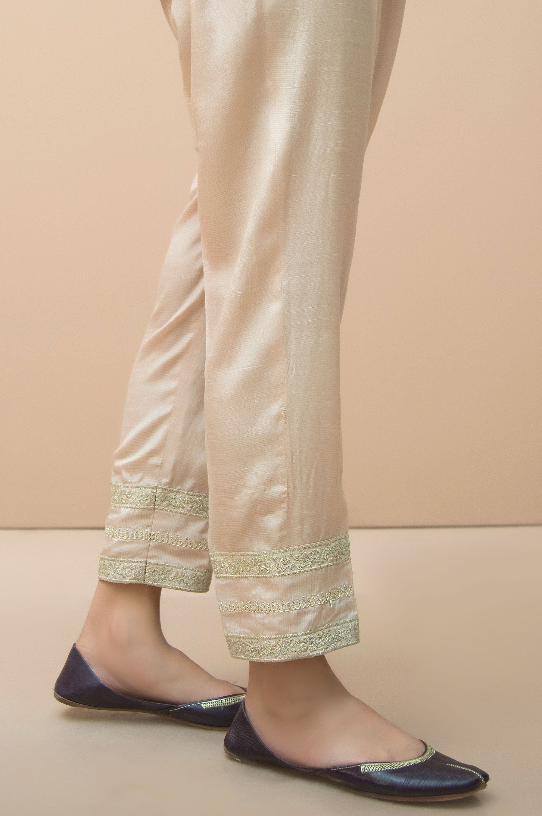 Cigarette pants, Embroidery on hemline.