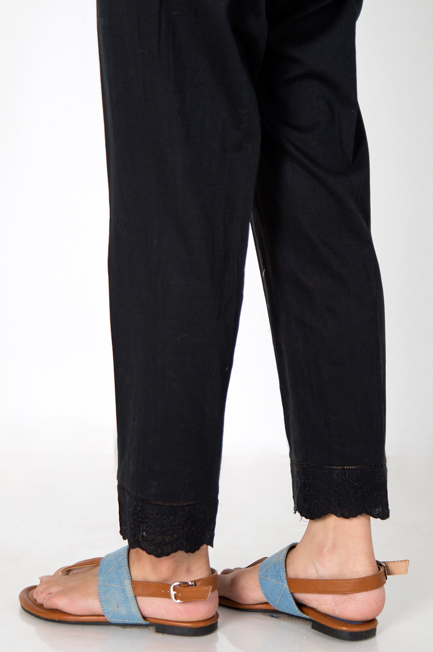 Cotton Slub Embroidered Cigarette Pants - Midnight Black