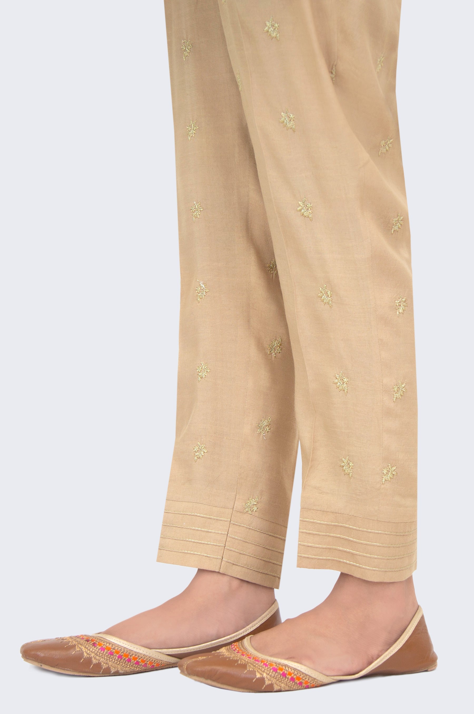 This sand beige pant illustrated with minimal floral boti embroidery all over the pants.It is a must must buy for the coming festive season
