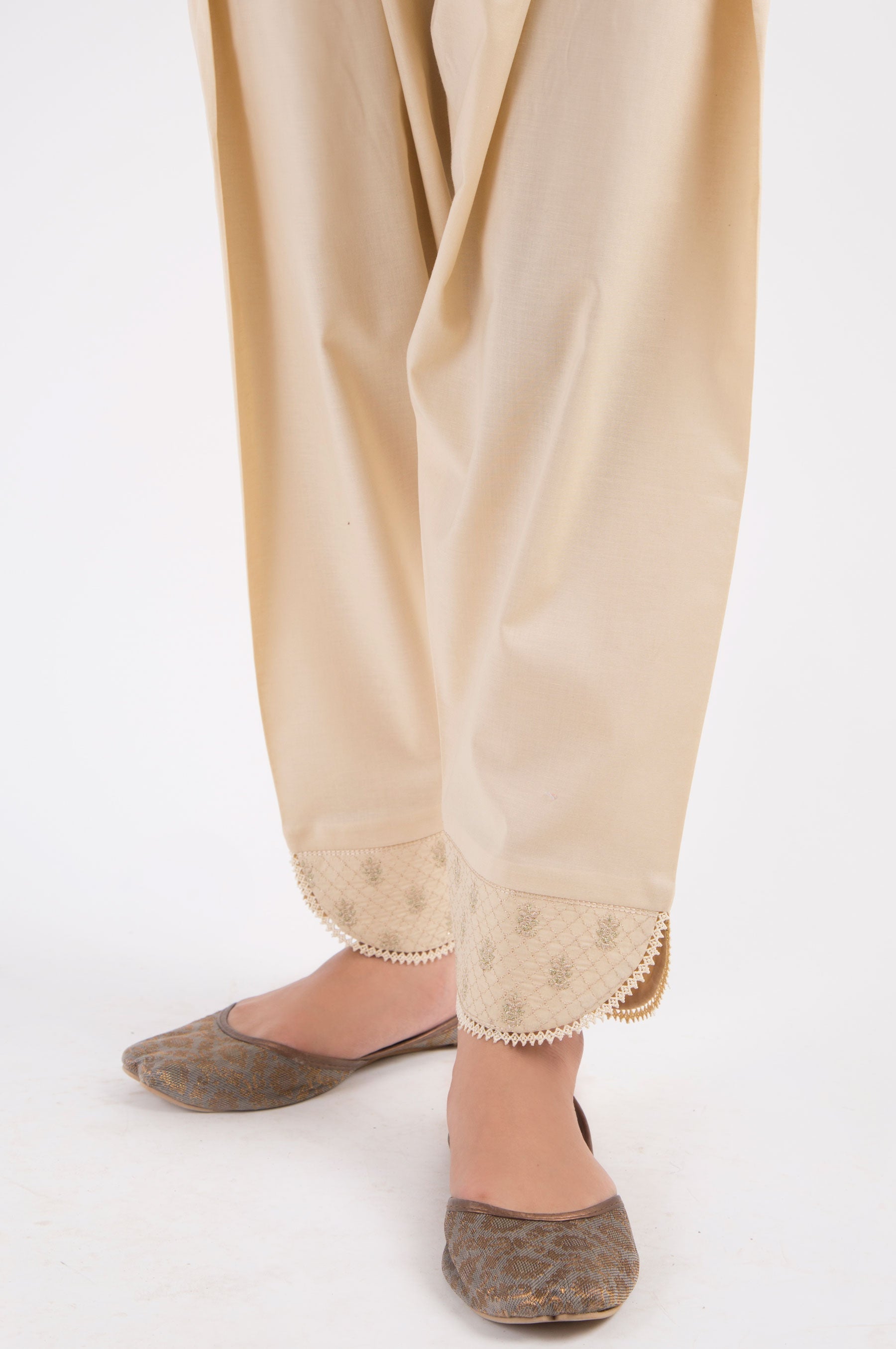 Embroidered Cambric Shalwar - Beige