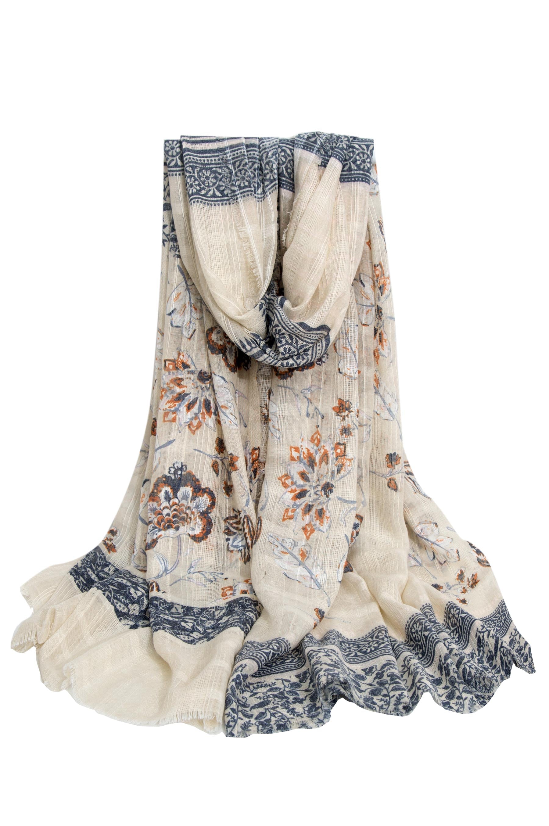 Delicate floral print across a lusciously soft fringe-trim scarf is long, comfortable and winterfull.