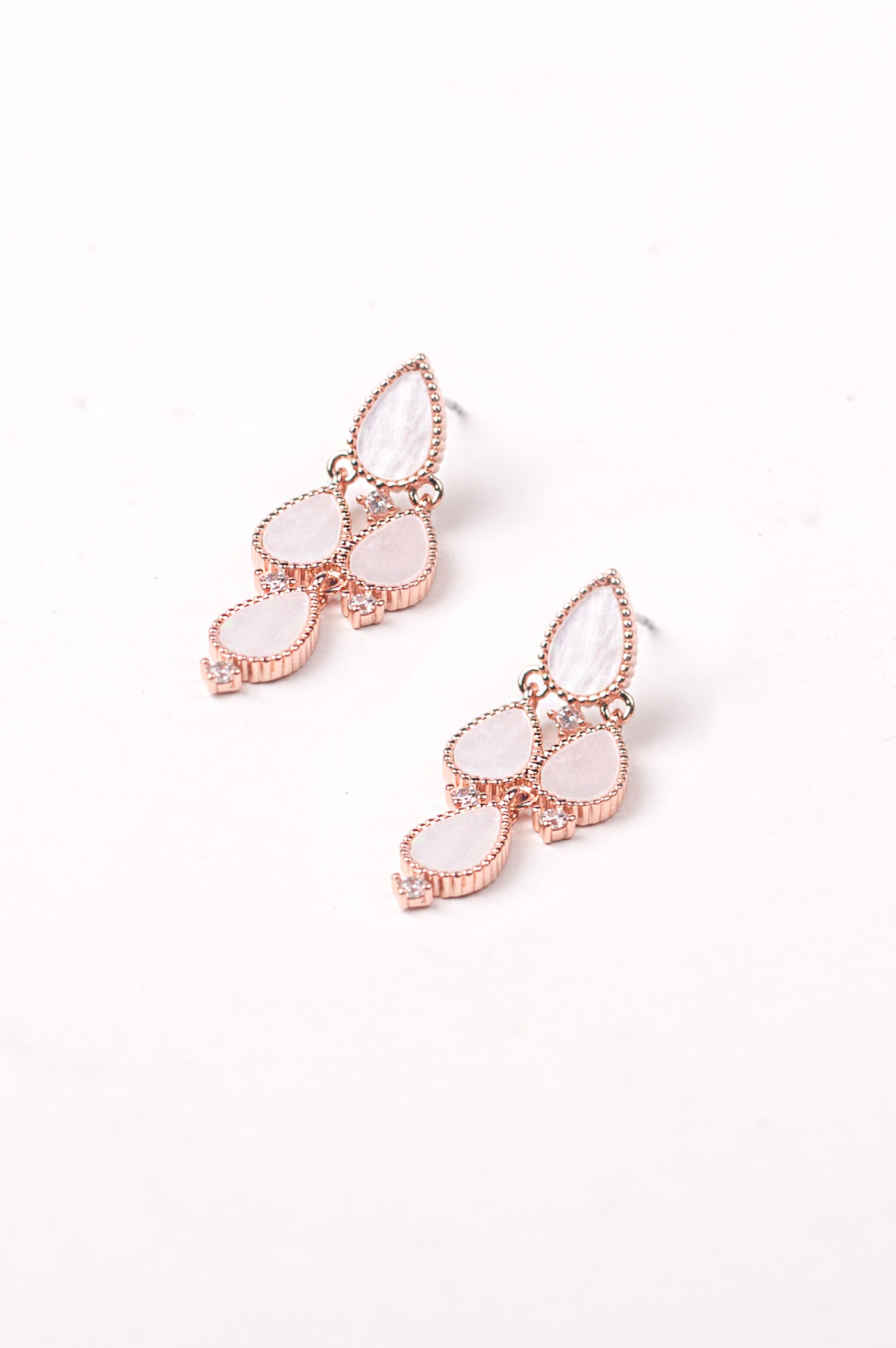A cluster of mother of pearl and glistening zircon stones in this classic drop earrings are understated luxury at its best.
