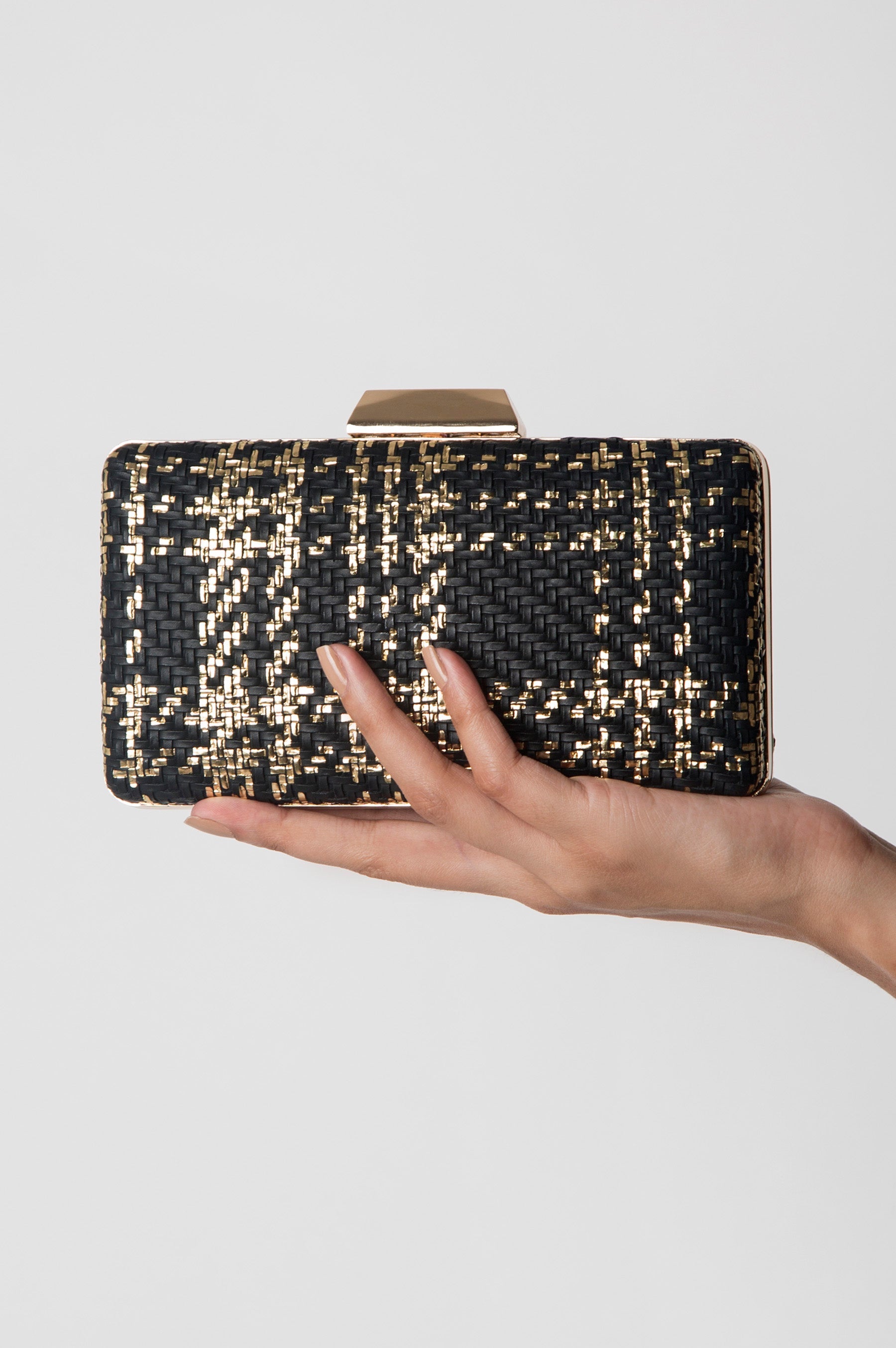 Put up a modern spin on classic style with this two tone free-stitched clucth in Gold Accent. This accessory spells out a suave and cosmopolitan feel.