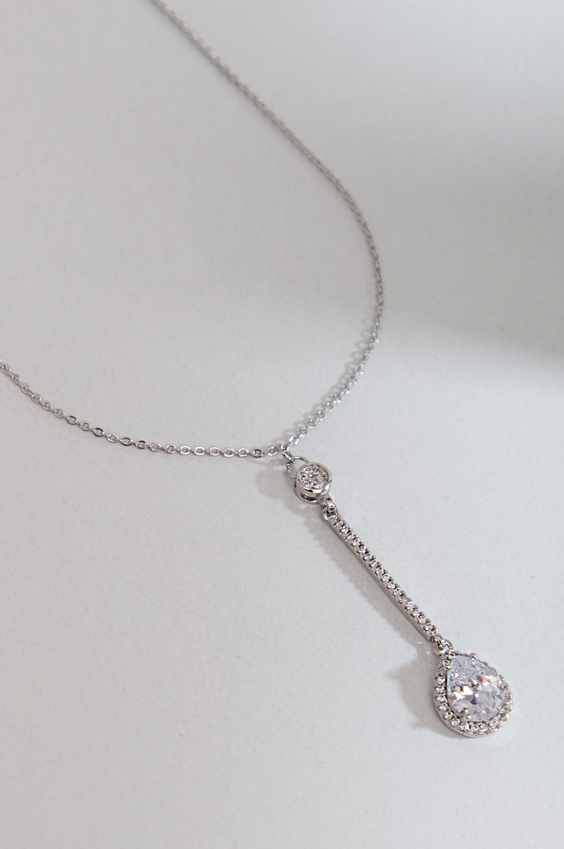 Transform your evening looks from ordinary to extraordinary with this sparkling tear drop linear pendant. The pendant is made from delicate chain and a CZ stone which can elevate your look!