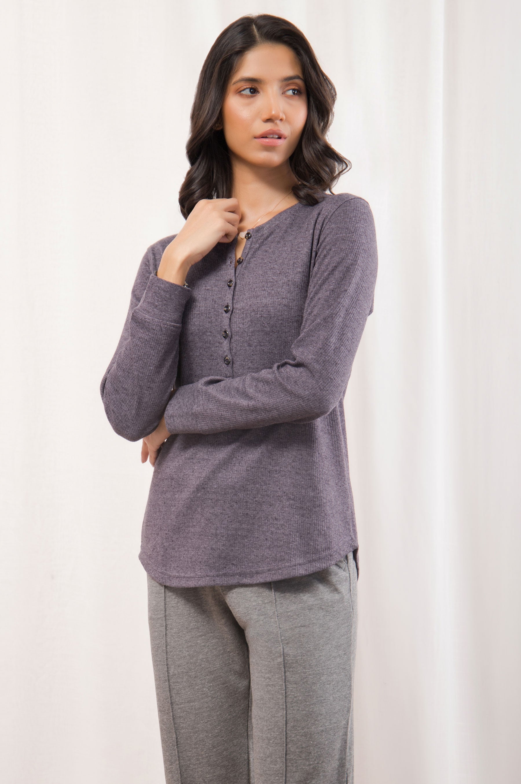 Henley long sleeves T-shirt.