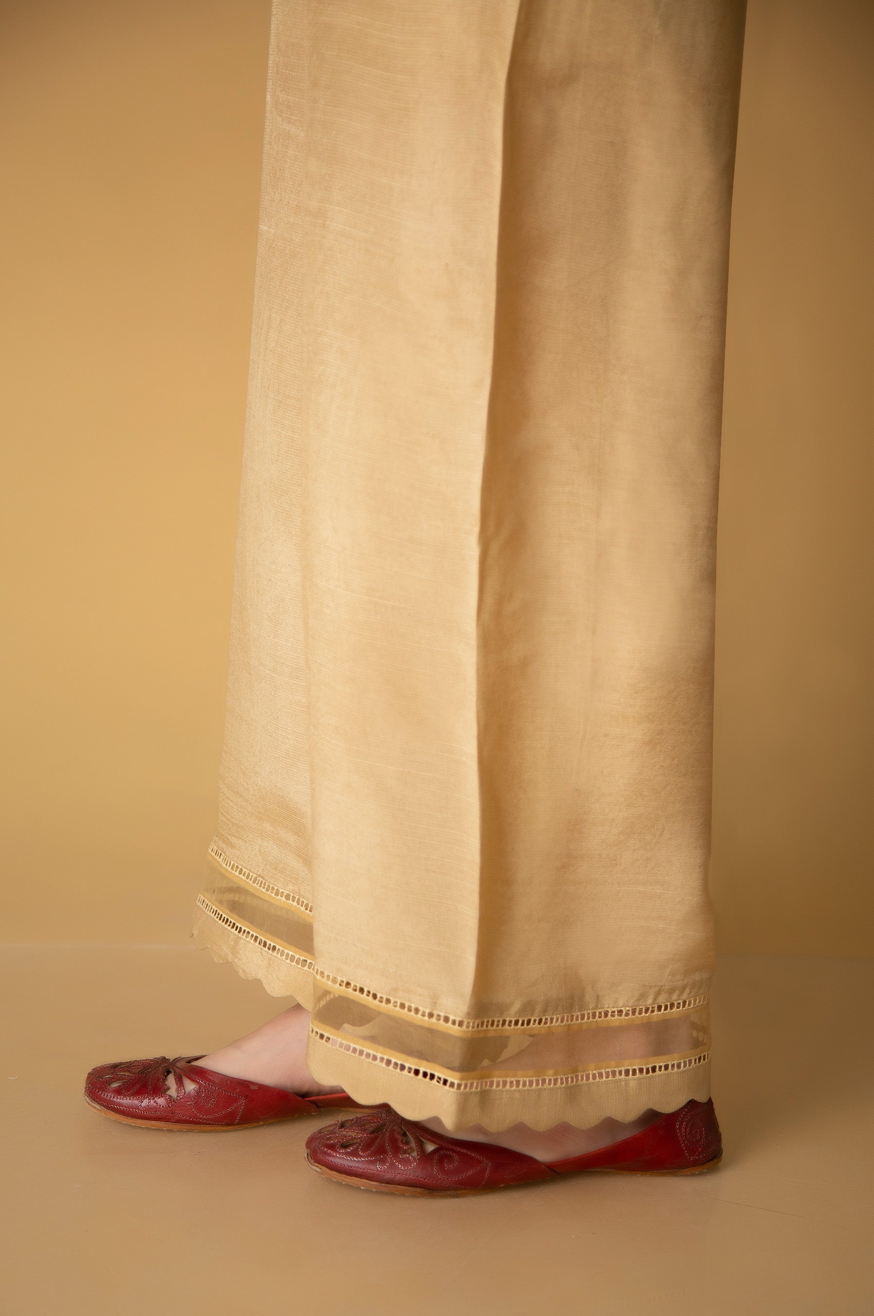 Add a classic yet traditional touch to your formal outfit with gold scalloped cullote.