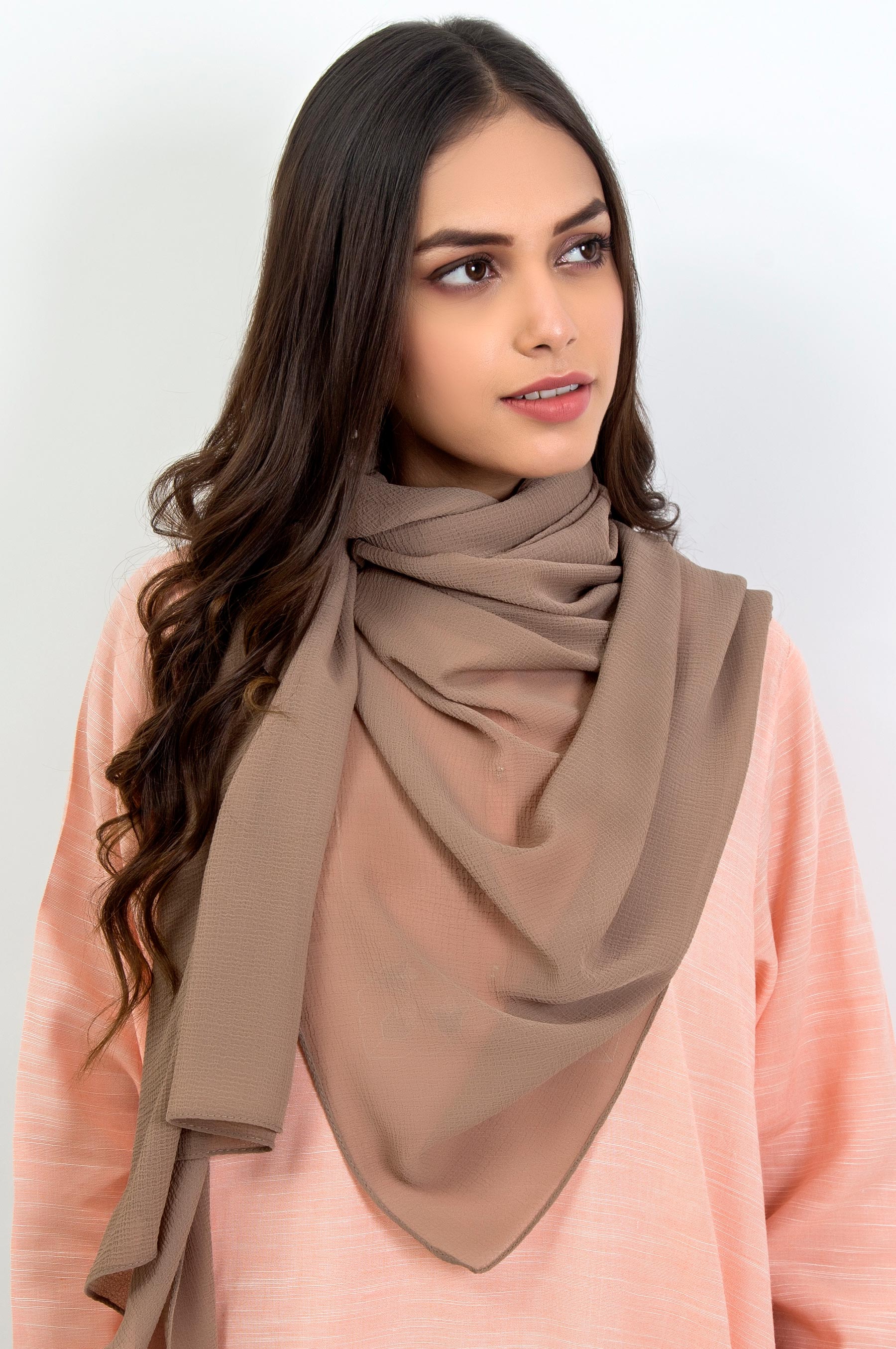 A gorgeous chiffon scarf in sheer can elevate your everyday look, Fit n Finish: 100% Poly Viscose, Size: 180*70 CM, Color: Tortilla Brown