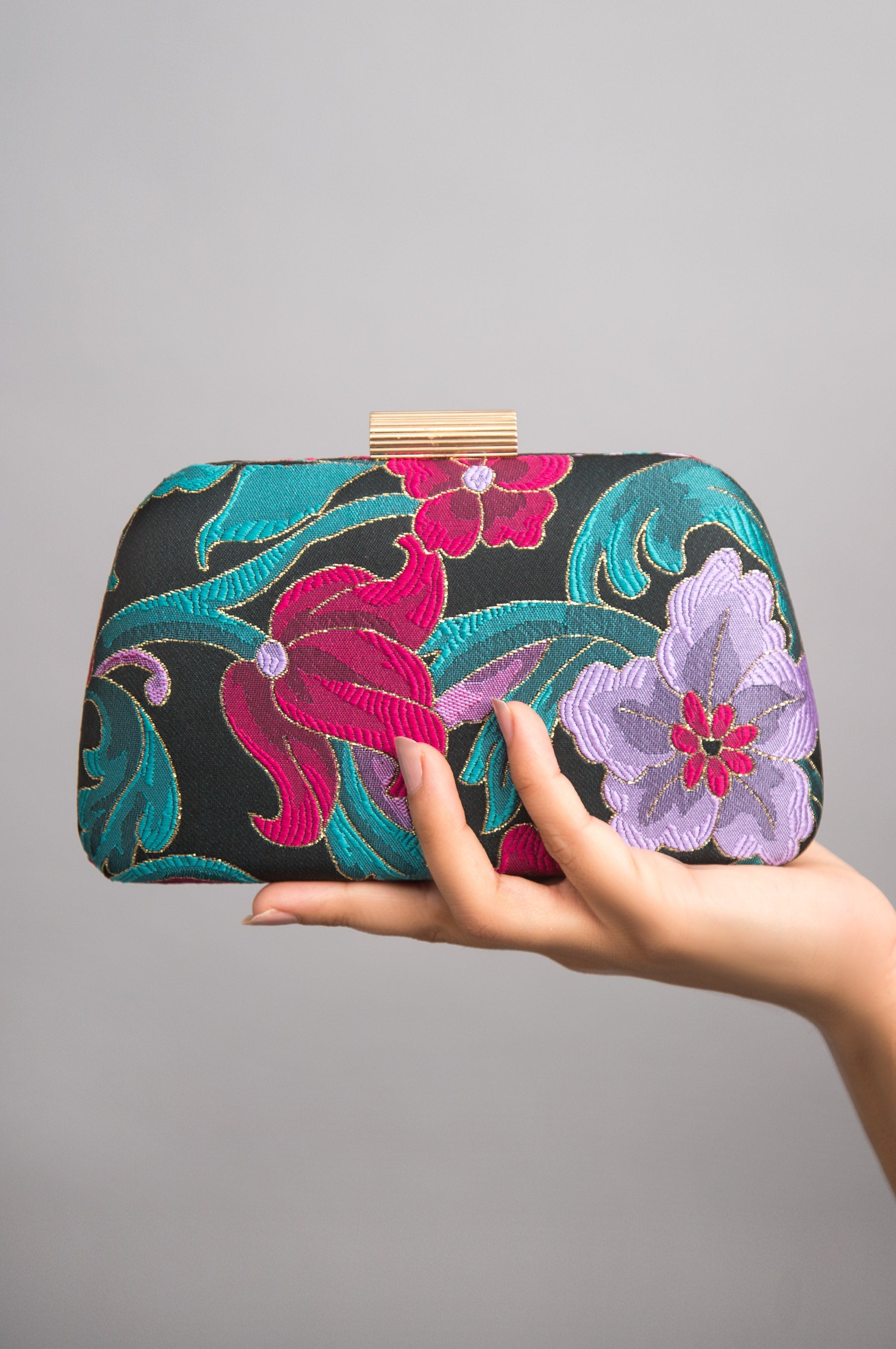 Take a timeless approach to after-hours accessories with this clutch bag in a beautiful and colorful woven brocade.