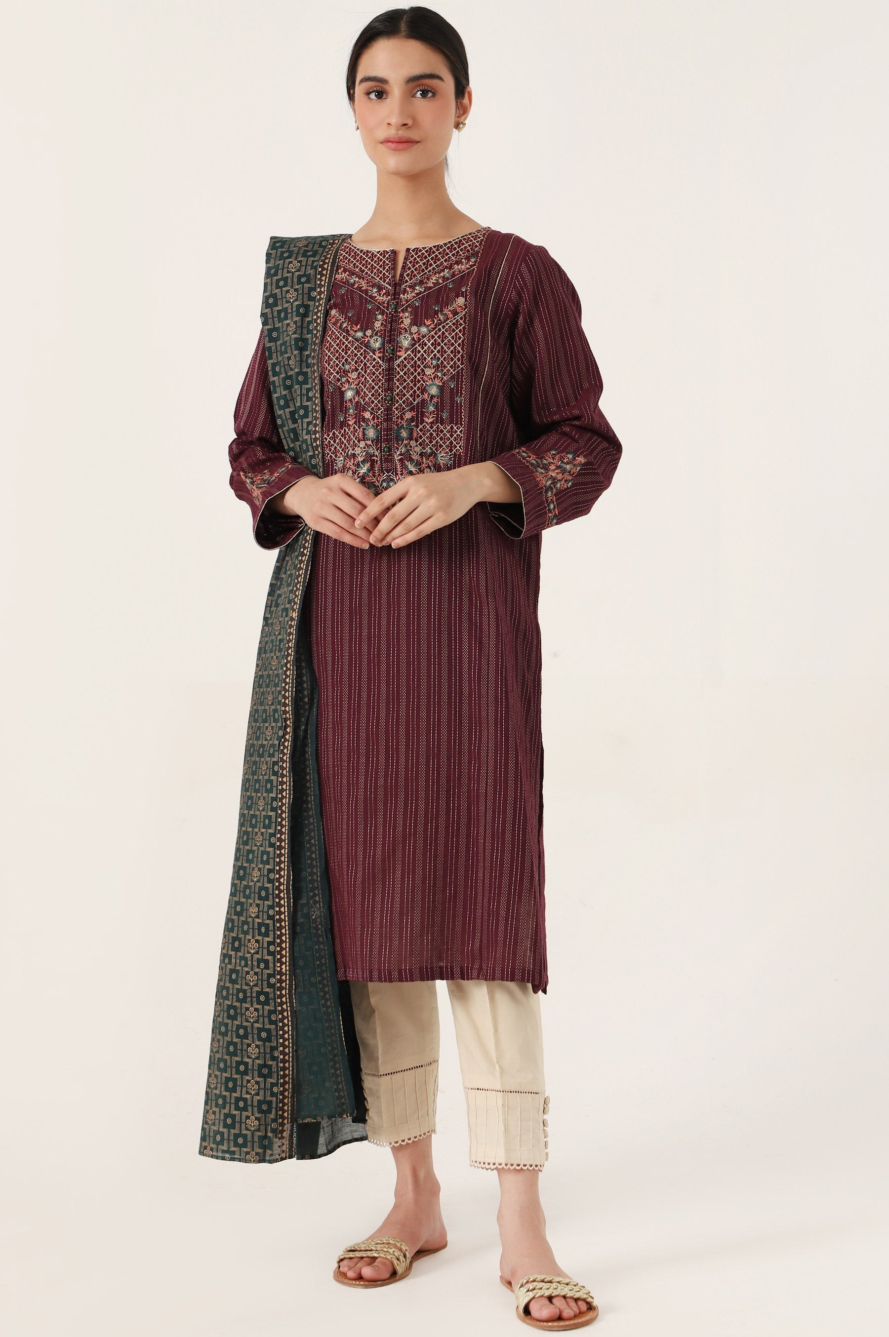 Stitched 2 Piece Embroideredm Zari Line & Screen Print Dupatta