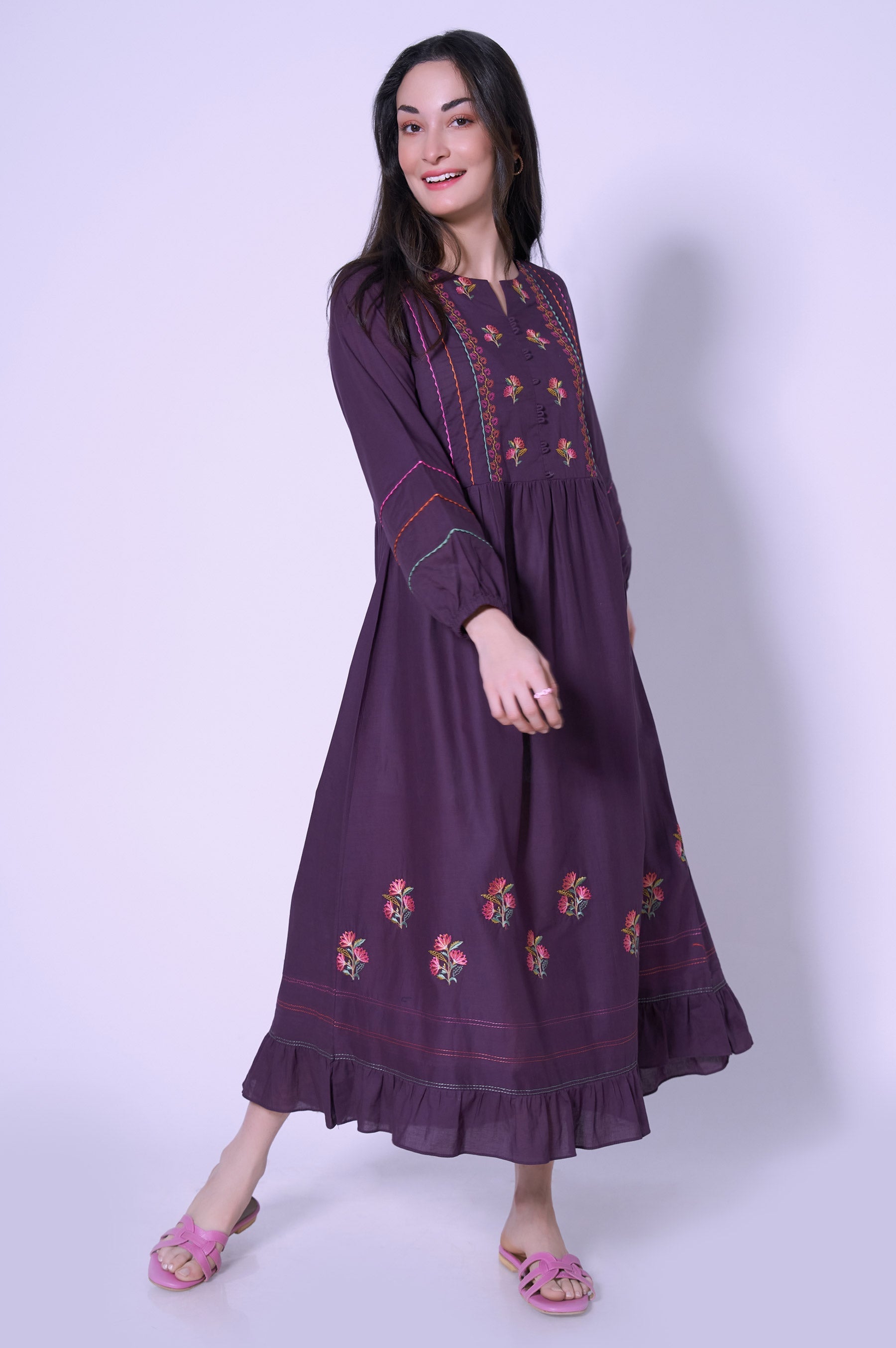 Stay relaxed yet stylish in this cute and playful long dress accentuated with pop color emb on the neckline and bottom hem of the dress. This alluring dress is perfect choice for a friends meet up or any birthday parties.