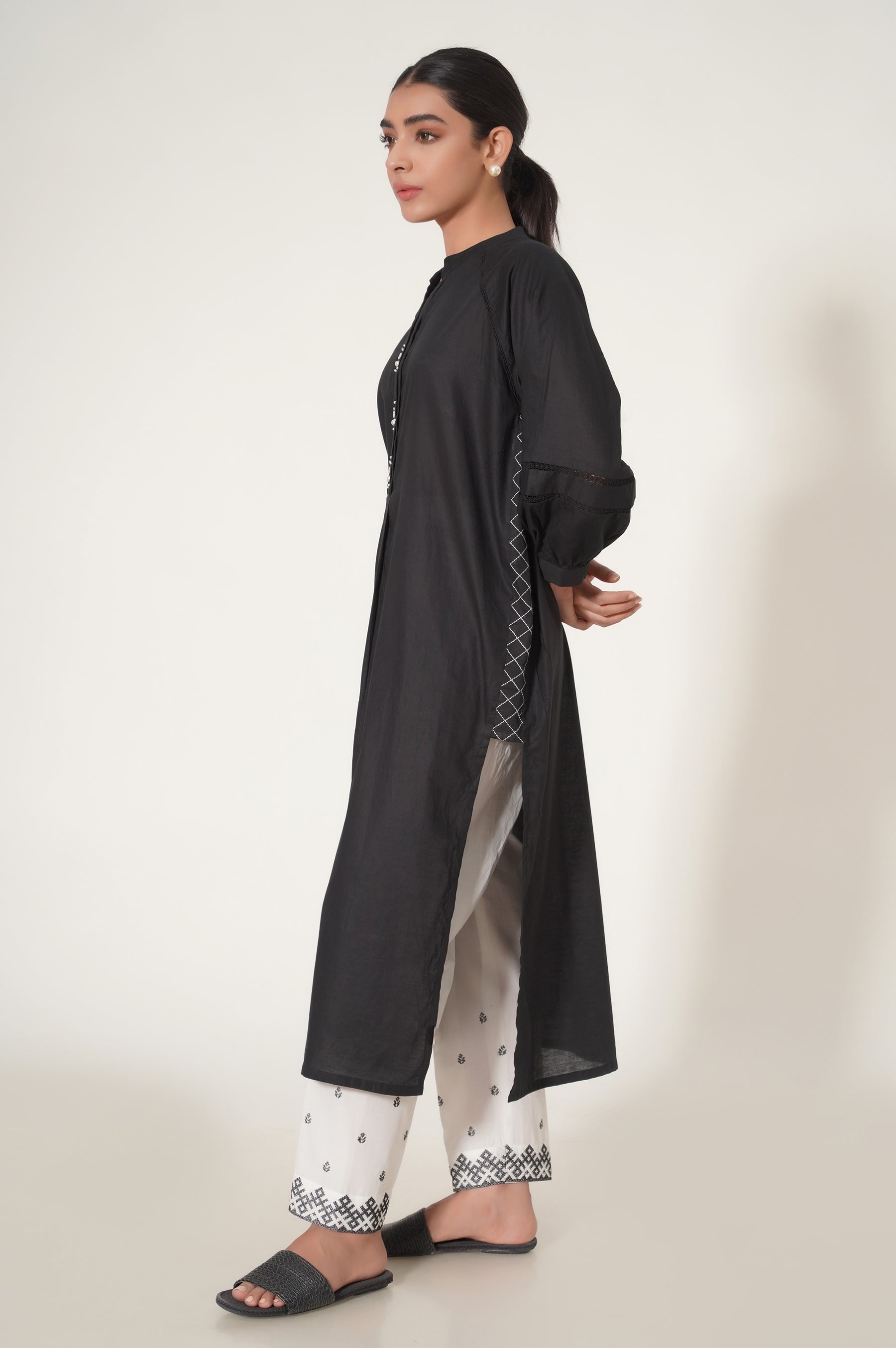 This modern shirt styled beautifully with raglan sleeves, scallop placket. Including balloon sleeves with lace detail. Ideal for daily wear.
